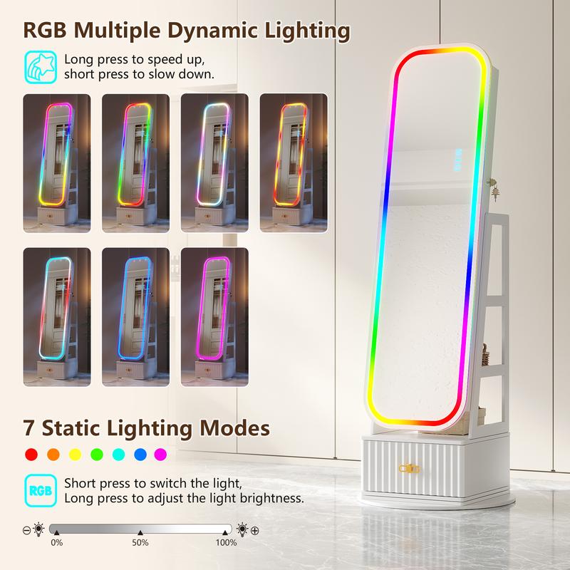5. Miu Round-Corner Design Full-RGB exterior length Mirror with 360° & LED-Features, Bottom Drawer Storage, Lockable Design Brush Cabinet Decor Safety