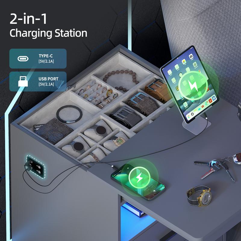·【Nightstand with Charging Station】One of the standout features of our nightstand is that it comes with USB and Type-C charging ports. Gone are the days of searching for a wall outlet or untangling messy cables. With the built-in charging station on this nightstand, perfect for your bedroom or living room