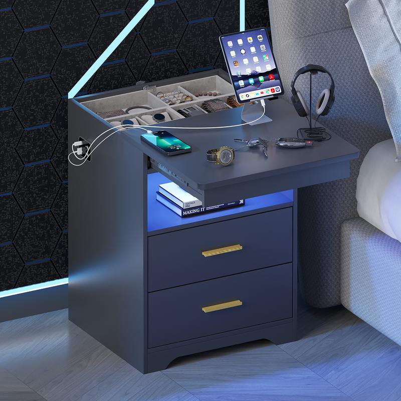 ·【Abundant Storage & Gun Safe】Featuring two spacious large drawers, an open storage area, and a hidden storage area with keys, the night stand provides ample storage space for bedside essentials and personal valuables to keep you organized