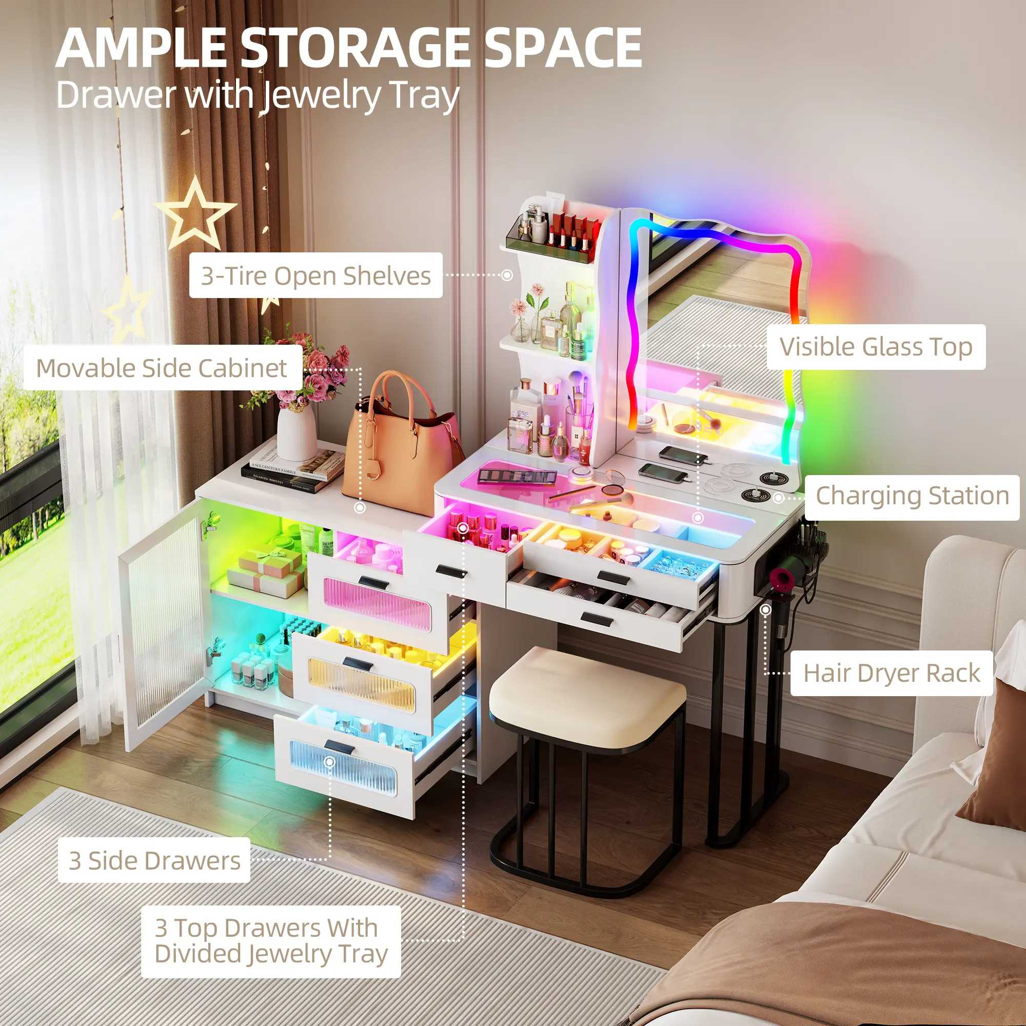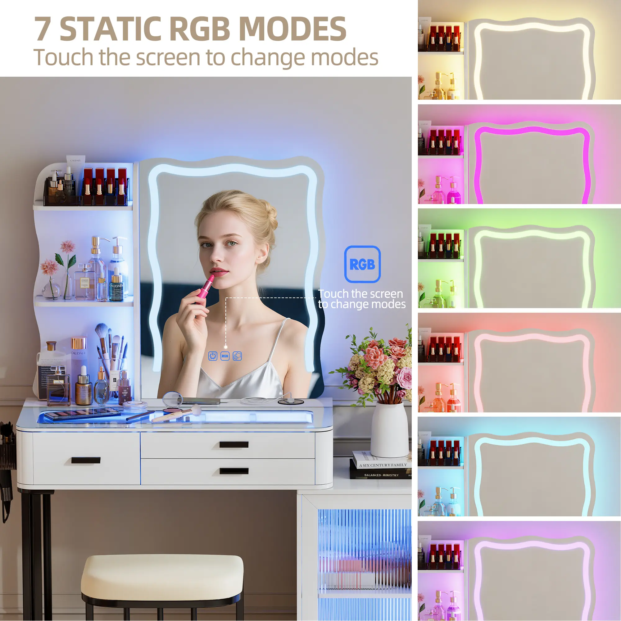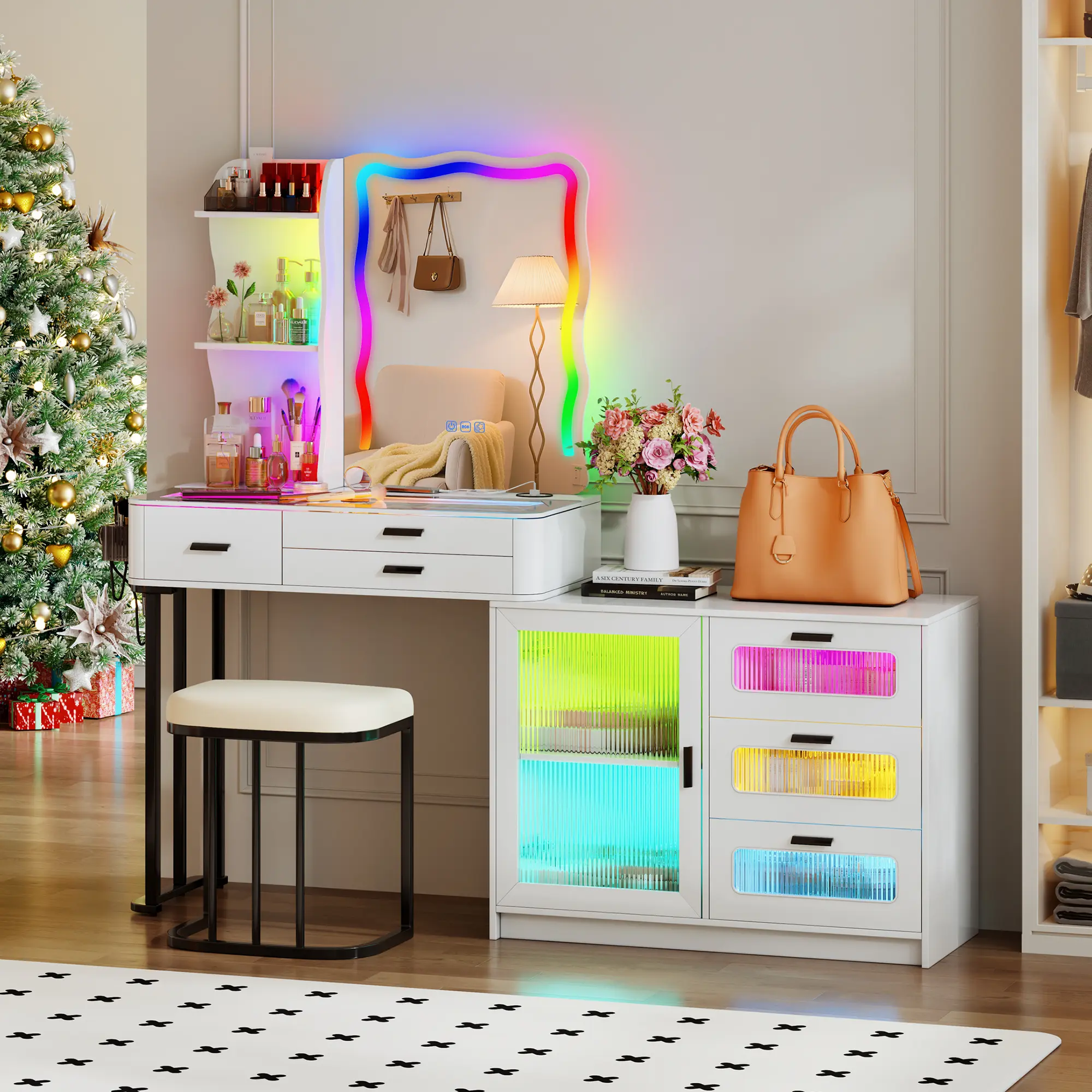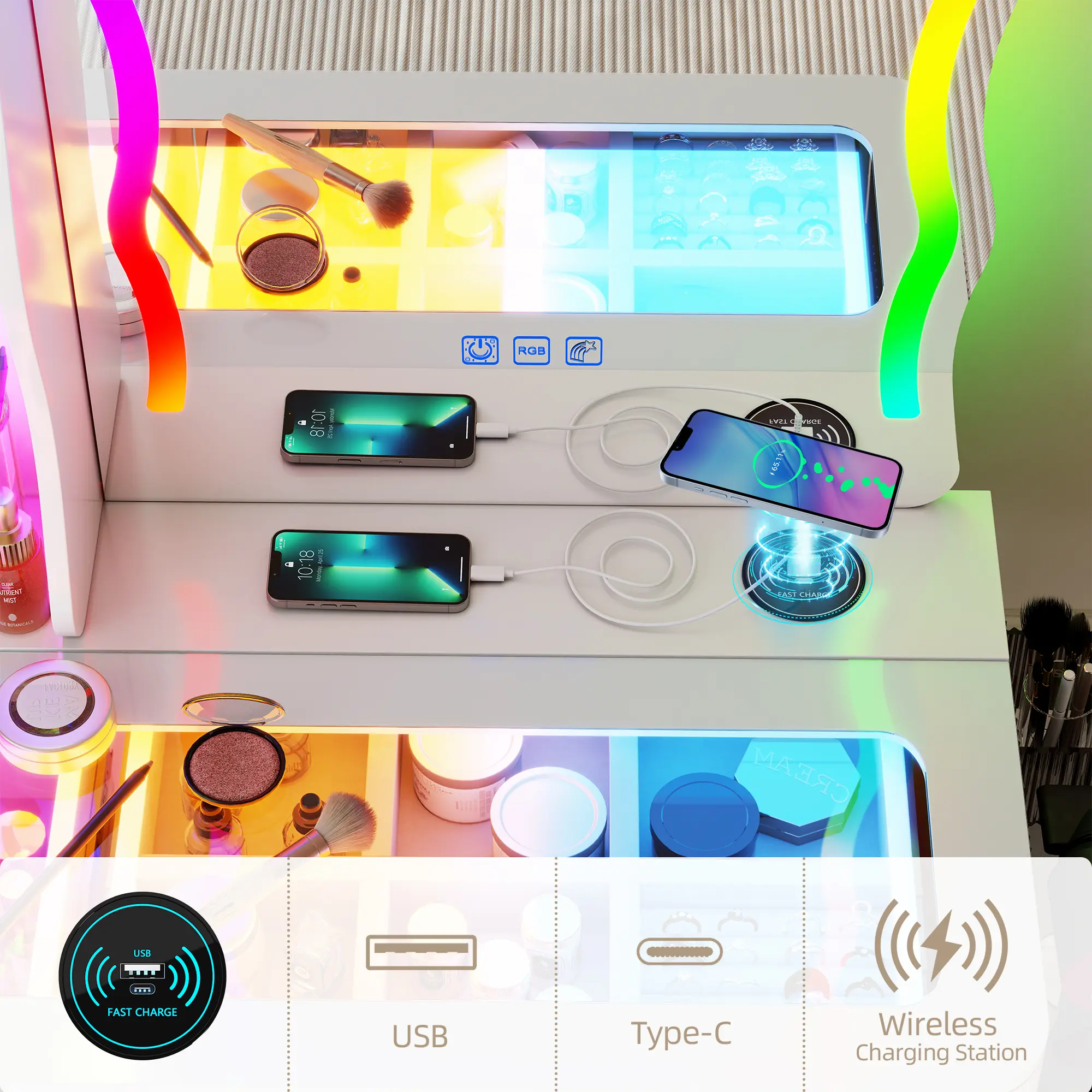 Miu Vanity Set with 7-Color RGB Lights, Wireless Charging, HD Mirror, 8-Drawer Chest & Big Storage Furniture Organizing - Modern Design Adjustable BrightnessMiu Vanity Set with 7-Color RGB Lights, Wireless Charging, HD Mirror, 8-Drawer Chest & Big Storage Furniture Organizing - Modern Design Adjustable BrightnessMiu Vanity Set with 7-Color RGB Lights, Wireless Charging, HD Mirror, 8-Drawer Chest & Big Storage Furniture Organizing - Modern Design Adjustable BrightnessMiu Vanity Set with 7-Color RGB Lights, Wireless Charging, HD Mirror, 8-Drawer Chest & Big Storage Furniture Organizing - Modern Design Adjustable BrightnessMiu Vanity Set with 7-Color RGB Lights, Wireless Charging, HD Mirror, 8-Drawer Chest & Big Storage Furniture Organizing - Modern Design Adjustable BrightnessMiu Vanity Set with 7-Color RGB Lights, Wireless Charging, HD Mirror, 8-Drawer Chest & Big Storage Furniture Organizing - Modern Design Adjustable BrightnessMiu Vanity Set with 7-Color RGB Lights, Wireless Charging, HD Mirror, 8-Drawer Chest & Big Storage Furniture Organizing - Modern Design Adjustable Brightness