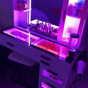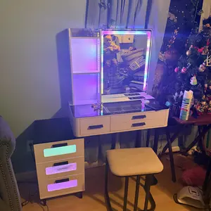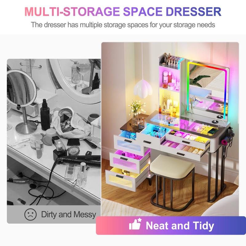 ·【RGB Lighting】 Dresser comes with dynamic and static lighting and a remote control allowing you to control it remotely,You can also feel the light in your body.