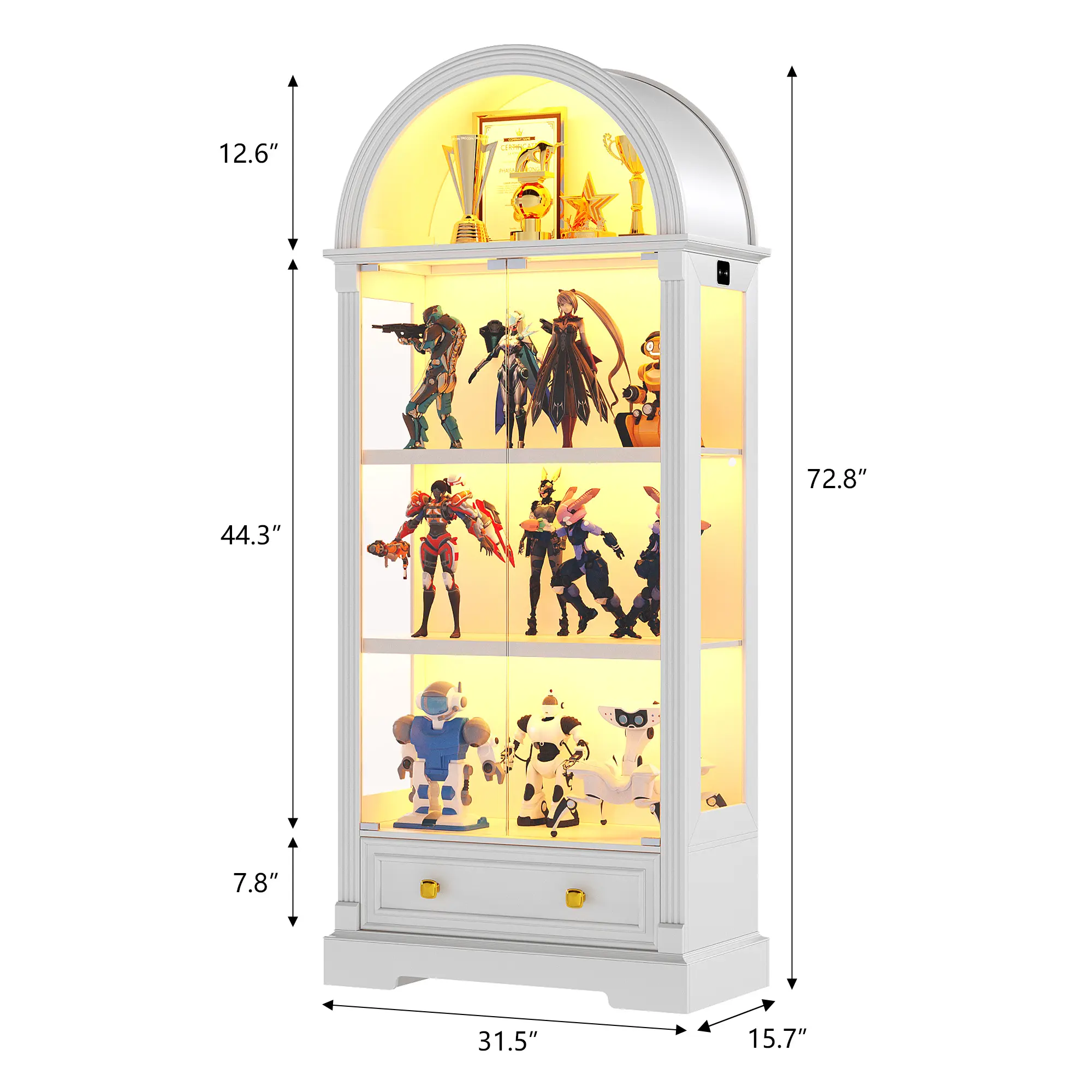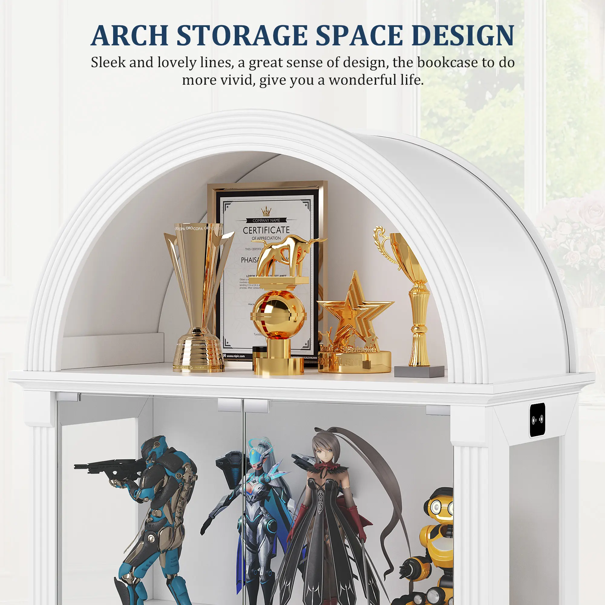 The MIUFarmhouse Arched Cabinet is a versatile piece for any room. It stands 71” tall, offering ample storage and display space. The arched design adds a touch of modern elegance. Perfect for living rooms or offices, this cabinet combines functionality with aesthetics.