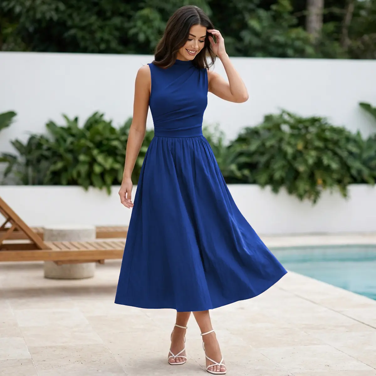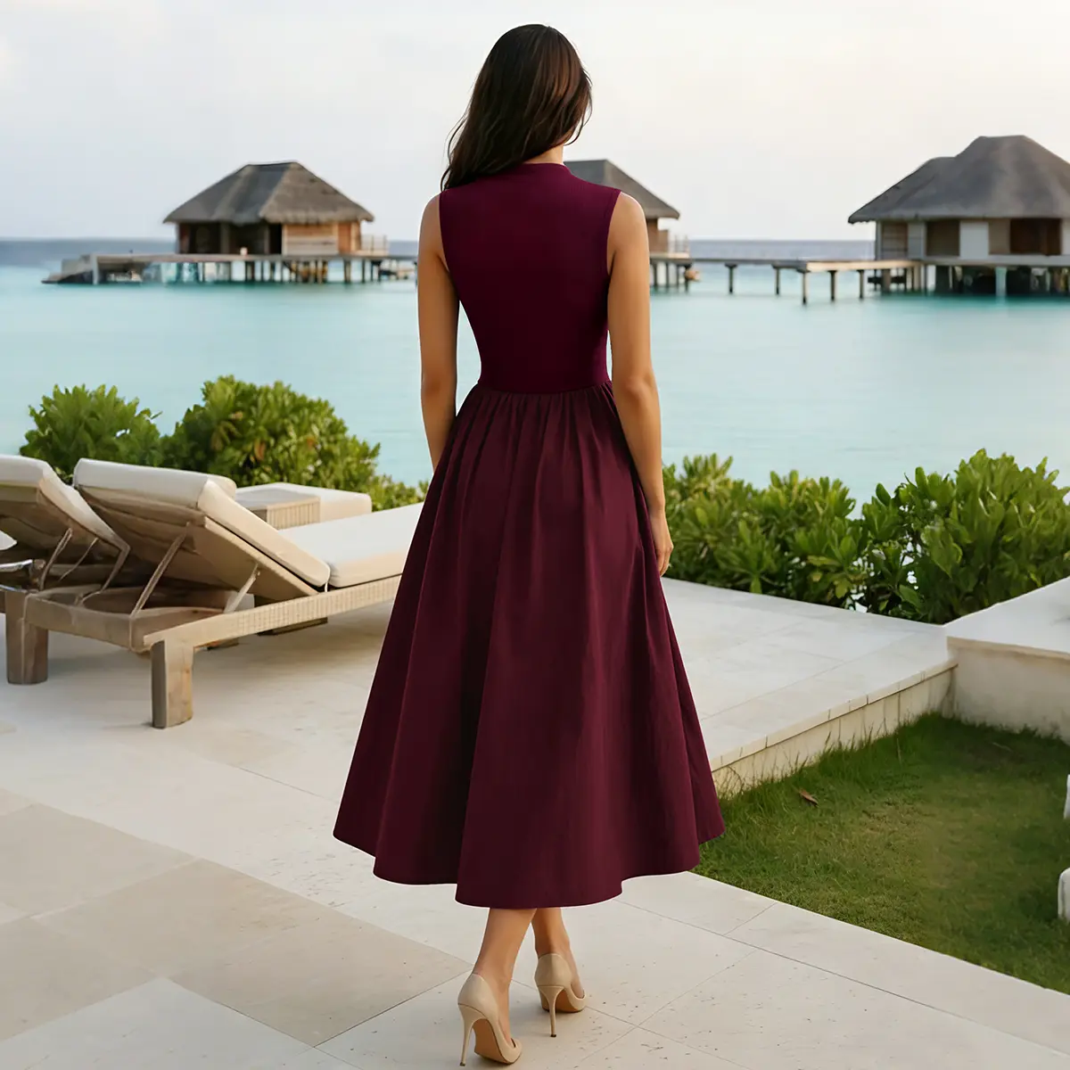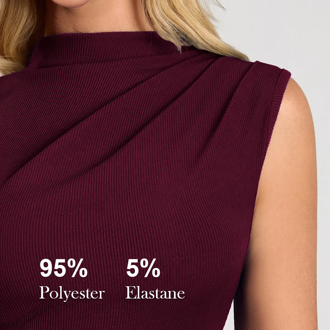 Ā·FEATURES: Mock Neck, Sleeveless, Below Knees Length, Slant Pocket Design, Pull on Style