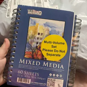 ·Pack of 2 premium 5.5" x 8.5" spiral-bound mixed media paper pad sketchbooks, each with 60 sheets. Pads contain heavyweight 98 pound (160 gsm) art sketchbook white paper sheets that are acid-free, neutral pH, and have a fine tooth texture surface.