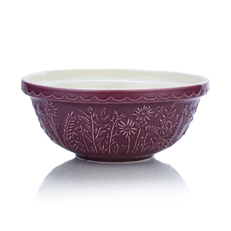 Bring the effortless charm of lush countryside fields indoors with the Mason Cash In The Meadow Collection S18 Mixing Bowl in Daisy. Made with Mason Cash's time-honored stoneware that is resistant to chipping and cracking, this mixing bowl will be a durably elegant addition to your everyday baking preparation. With a 2.85 Quart capacity, the S18 mixing bowl is ideal for preparing single batches of dough or batter or for serving side dishes. The deep purple-hued maroon coloring is highlighted with an embossed Daisy design that lines the bowl's perimeter, while the classic scalloped rim offers maximum grip - making for a practical, elegant piece that will let mixing tasks go smoother. Allow your baking tasks to bloom with style and order the Mason Cash In The Meadow Mixing Bowl today!