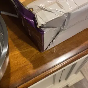 The box was smashed and the rim of the big bowl is bent