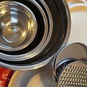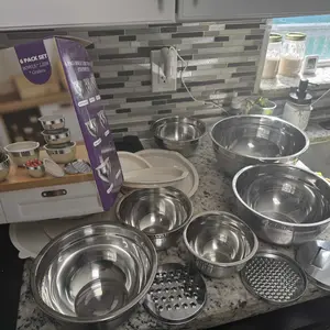 Bought as a Christmas present, boxes came all banged and crushed. The bowls are light weight. Not sure if theyre true stainless, but they are very compact for storing which is good. The only bowl you can grate with is the largest, that's a bummer. But not a bad set for the money