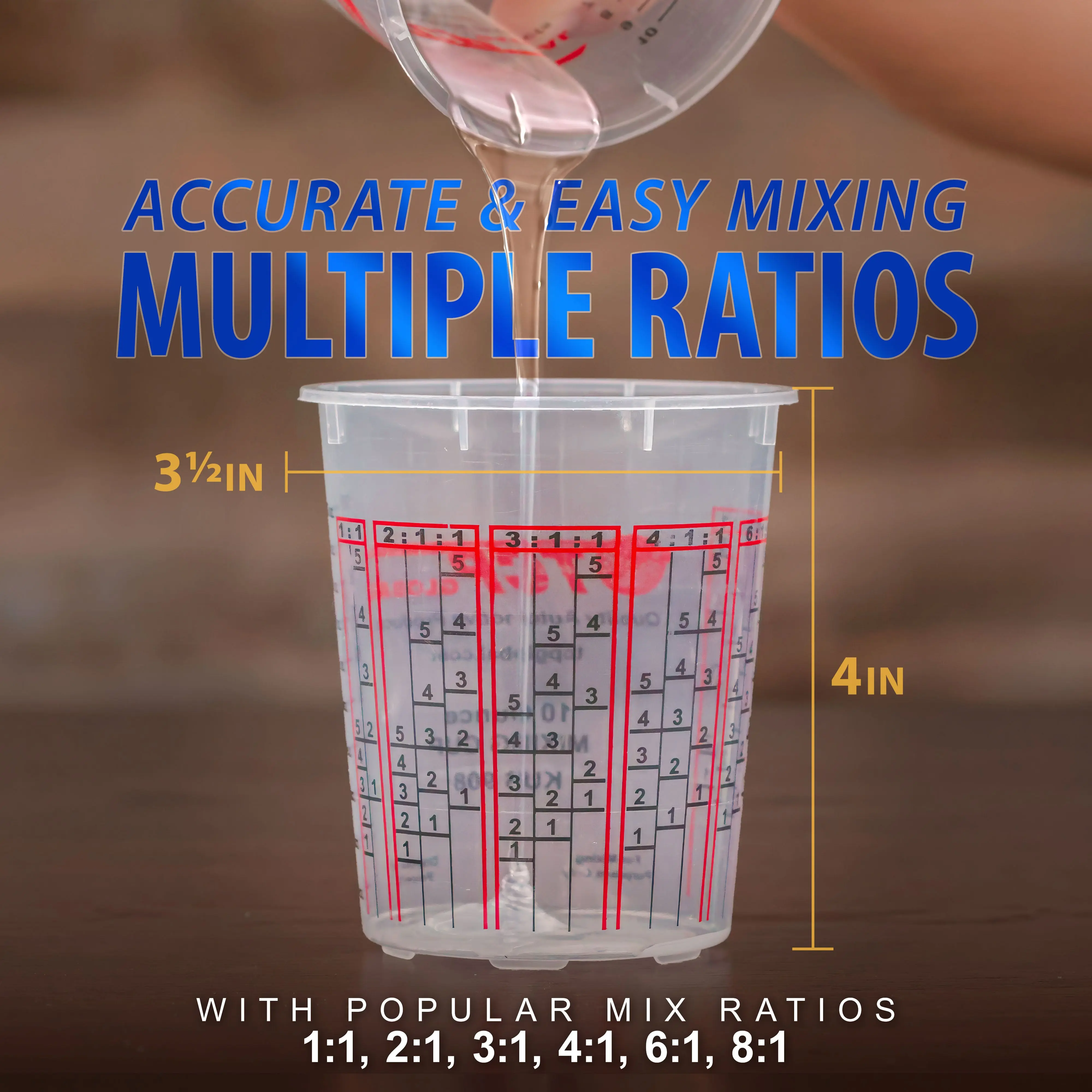 Graduated Mix Cups that are Solvent Resistant with all the popular Mix Ratios Graduated on the side of the Cup.