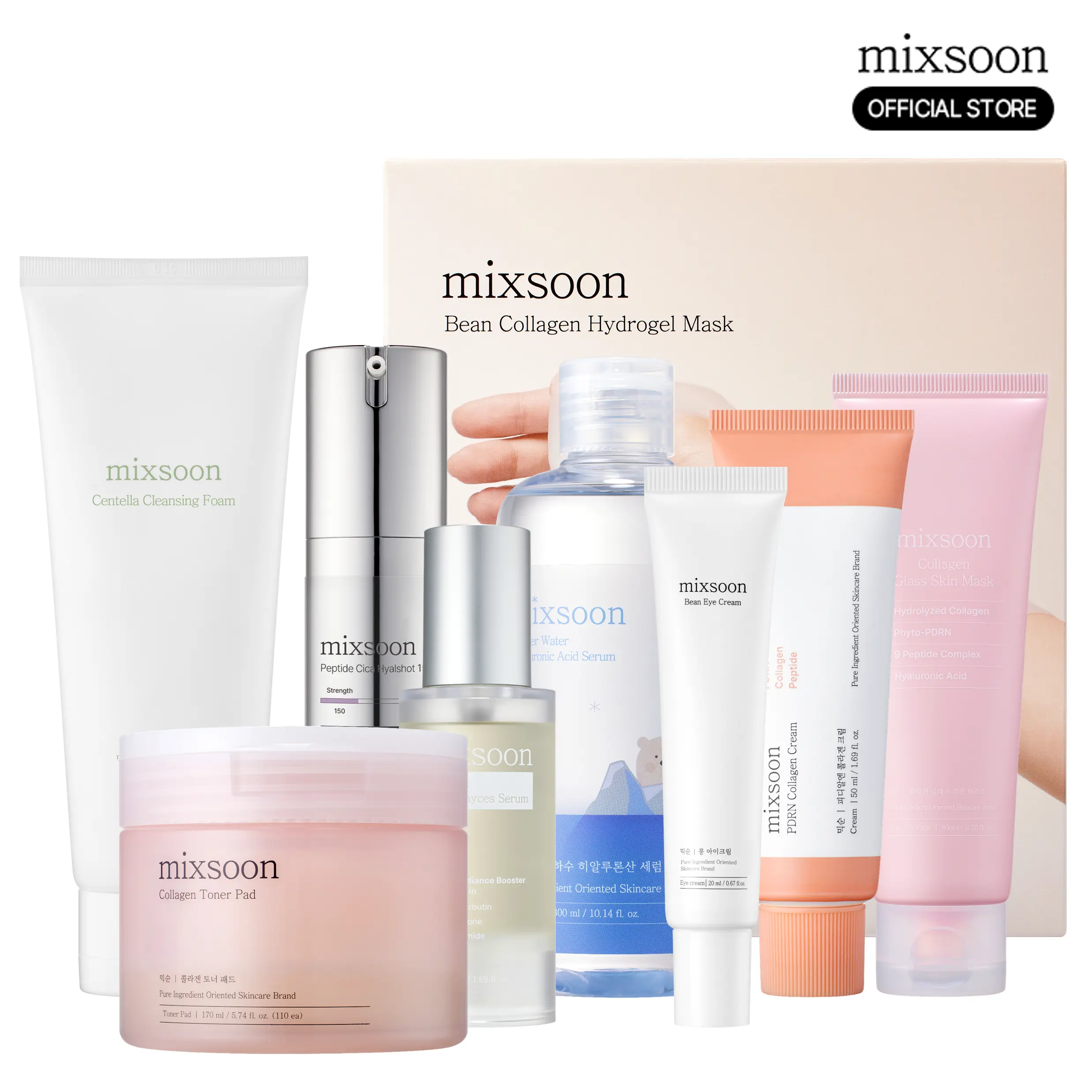 | Ingredients | Water/Aqua, Hydrogenated Poly(C6-14 Olefin), Glycerin, Dimethicone, Propanediol, Bis-Diglyceryl Polyacyladipate-2, Cetearyl Alcohol, Niacinamide, Polyglyceryl-3 Methylglucose Distearate, 1,2-Hexanediol, Panthenol, Glyceryl Stearate, Dimethicone/Vinyl Dimethicone Crosspolymer, Polyglyceryl-3 Distearate, Carbomer, Hydrogenated Lecithin, Tromethamine, Xanthan Gum, Ethylhexylglycerin, Adenosine, Glyceryl Stearate Citrate, Hibiscus Syriacus Callus Extract, Lactobacillus/Panax Ginseng Root Ferment Filtrate, Lactobacillus/Rice Ferment Filtrate, Lactobacillus/Soybean Ferment Extract, Saccharomyces/Coix Lacryma-Jobi Ma-Yuen Seed Ferment Filtrate, Saccharomyces/Potato Extract Ferment Filtrate, Tocopherol,WATER (AQUA), SODIUM COCOYL ISETHIONATE, GLYCERIN, HYDROXYPROPYL STARCH PHOSPHATE, SODIUM METHYL COCOYL TAURATE, PROPANEDIOL, POTASSIUM COCOYL GLYCINATE, ACRYLATES COPOLYMER, CETEARYL ALCOHOL, POTASSIUM COCOATE, SORBITAN OLIVATE, SALICYLIC ACID, GLYCOL DISTEARATE, GLYCERYL STEARATE, CITRIC ACID, CAPRYLYL GLYCOL, BUTYLENE GLYCOL, 1,2-HEXANEDIOL, GLYCERYL CAPRYLATE, CENTELLA ASIATICA EXTRACT, DISODIUM EDTA,Water/Aqua, Water1), Butylene Glycol , 1,2-Hexanediol , Sodium Hyaluronate Galactomyces Ferment Filtrate, Butylene Glycol, Niacinamide, Panthenol, Hydrolyzed Hyaluronic Acid, Betaine, Glycine, Glutathione, Alpha-Arbutin, Ectoin, Ceramide NP Water/Aqua, Glycerin, Acrylates Copolymer, Niacinamide, Xanthan Gum, Carrageenan, Butylene Glycol, Ceratonia Siliqua (Carob) Gum, 1,2-Hexanediol, Betaine, Hydroxyacetophenone, Potassium Chloride, Sodium Polyacrylate, Sucrose, Cellulose Gum, Allantoin, Gellan Gum, Propanediol, Polyglyceryl-10 Laurate, Dipotassium Glycyrrhizate, Adenosine, Caprylyl Glycol, Ethylhexylglycerin, Hydrolyzed Collagen, Disodium EDTA, Lactobacillus/Soybean Ferment Extract, Lactobacillus/Punica Granatum Fruit Ferment Extract, Saccharomyces/Barley Seed Ferment Filtrate, Lactobacillus/Pear Juice Ferment Filtrate, Hydrolyzed Extensin Water/Aqua, Dipropylene Glycol, Glycerin, Glycereth-26, Niacinamide, Butylene Glycol, Betaine, Propanediol, Sodium Acrylate/Sodium Acryloyldimethyl Taurate Copolymer, Polyisobutene, 1,2-Hexanediol, Ethylhexyl Palmitate, Hydroxyacetophenone, Hydrolyzed Sponge, Cetyl Ethylhexanoate, Polyglyceryl-10 Oleate, Caprylyl/Capryl Glucoside, Sorbitan Oleate, Acrylates/C10-30 Alkyl Acrylate Crosspolymer, Ethylhexylglycerin, Xanthan Gum, Adenosine, Hydrogenated Lecithin, Disodium EDTA, Tromethamine, Sodium Hyaluronate, Hyaluronic Acid, Hydrolyzed Hyaluronic Acid, Caprylyl Glycol, Sodium Phosphate, Centella Asiatica Extract, Centella Asiatica Leaf Extract, Centella Asiatica Root Extract, Pinus Pinaster Bark Extract, Asiaticoside, Asiatic Acid, Madecassoside, Madecassic Acid, sh-Oligopeptide-1 Water/Aqua, Butylene Glycol, Niacinamide, Diethoxyethyl Succinate, Hydroxyethyl Urea, 1,2-Hexanediol, Hydroxyacetophenone, Glycereth-25 PCA Isostearate, Xanthan Gum, Ethylhexylglycerin, Propanediol, Adenosine, Sodium Phytate, Citric Acid, Glycerin, Zea Mays (Corn) Kernel Extract, Hyaluronic Acid, Hydrolyzed Hyaluronic Acid, Sodium Hyaluronate, Fructan, Gl |