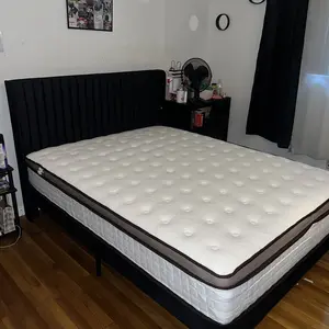 Very comfy Thick mattress has springs, It’s higher than i thought it would be but i don't mind I sleep so easy and comfortably!