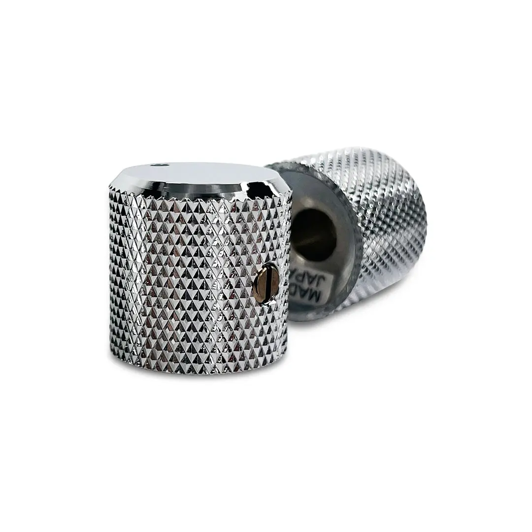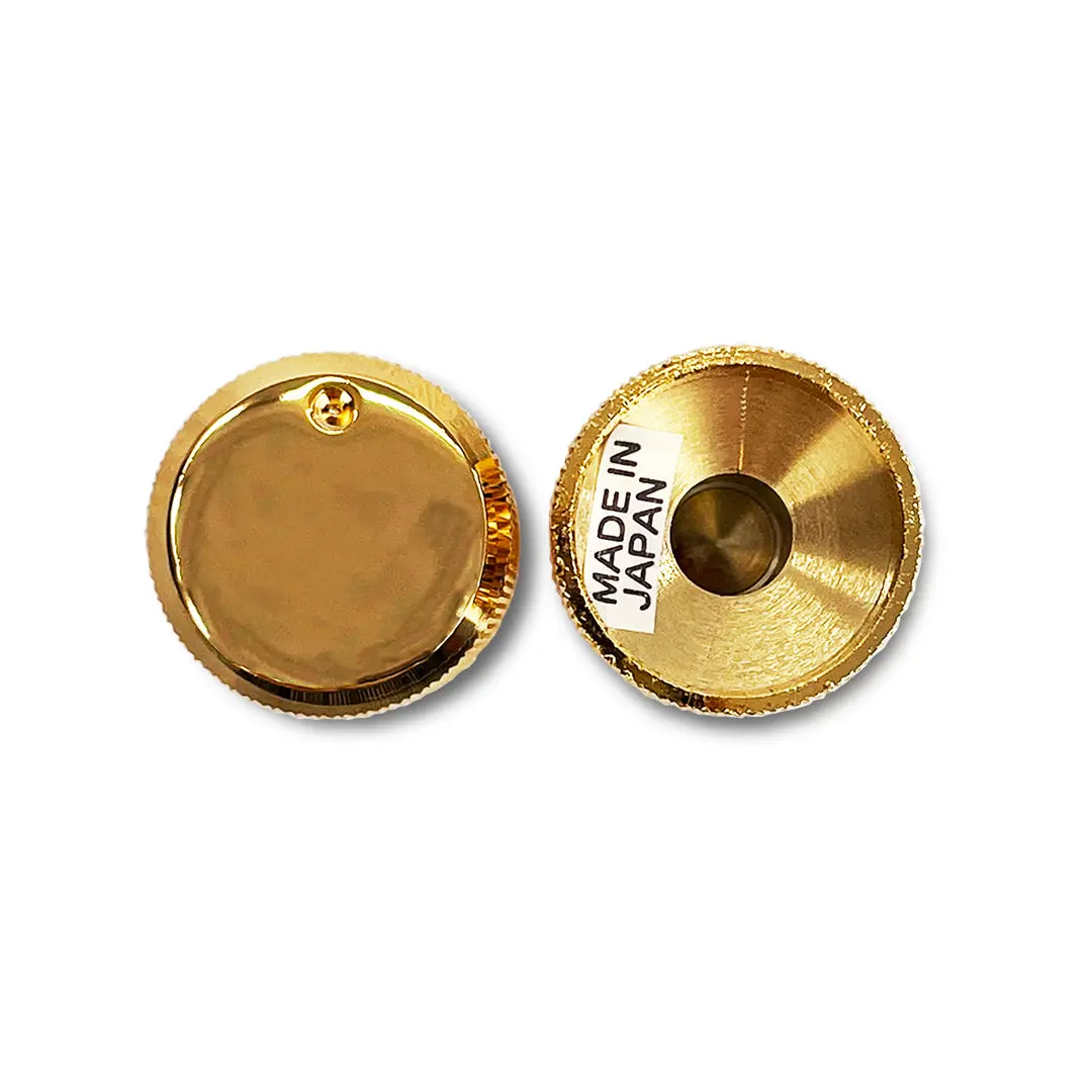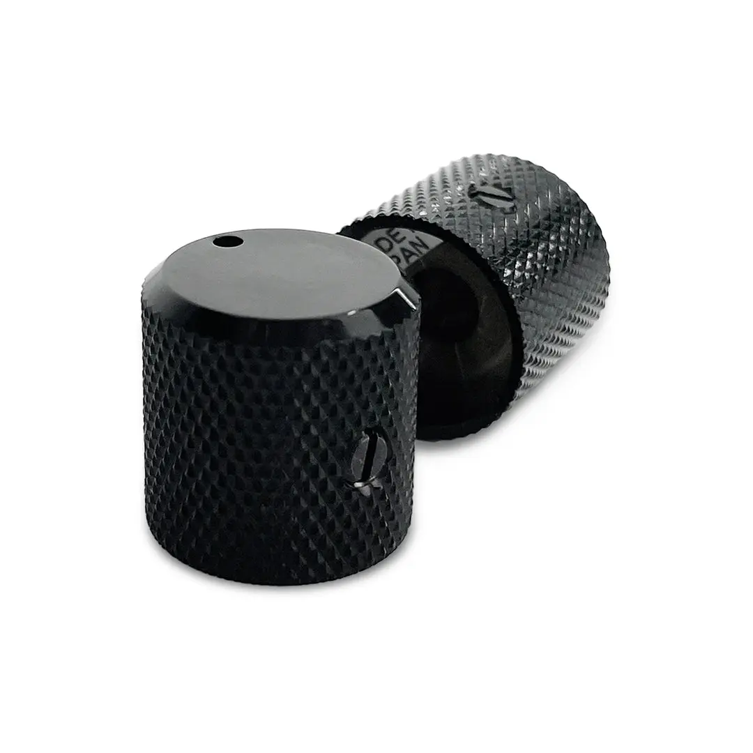 Gotoh metal knurled knobs (2) with flat head and indicator dot. Fits USA Split shaft pots