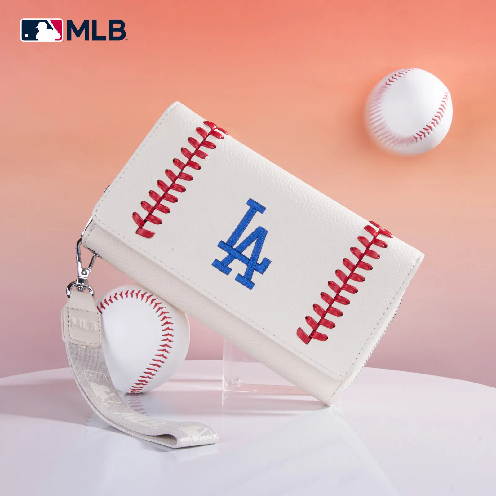 This officially licensed MLB wallet is crafted from synthetic leather. It features an embossed LA logo with whipstitch detailing. The compact design measures 7.5" (L) x 2" (W) x 4.5" (H), weighing 0.831 lb. It offers a small, practical interior capacity for daily essentials. Perfect for game days, casual outings, work, travel, or school.