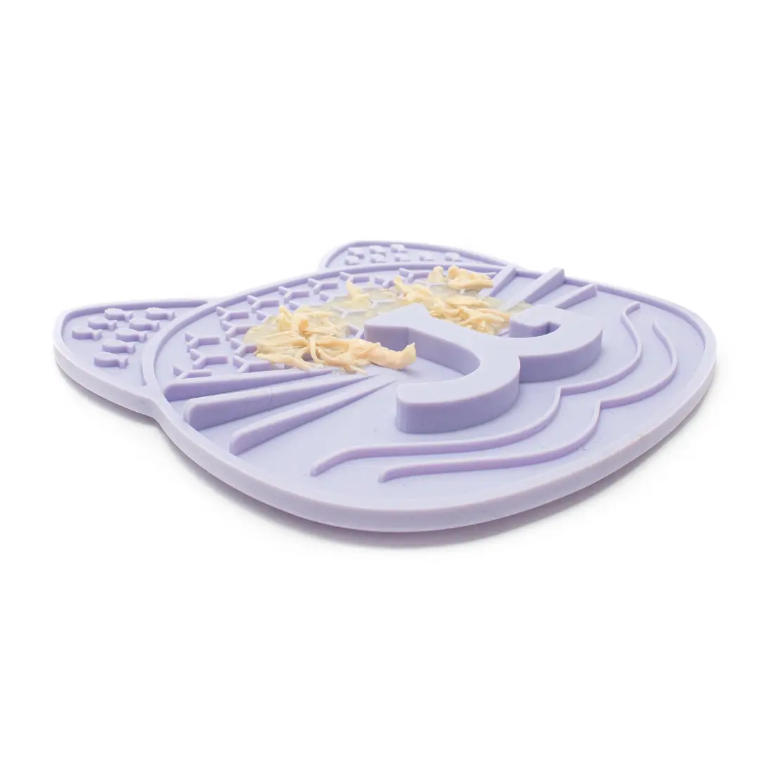 ·Prepare the Mmmeow Mat by spreading wet food or sprinkling dry treats into the crevices. This encourages slow feeding and provides a stimulating puzzle activity for your cat to enjoy while they eat.