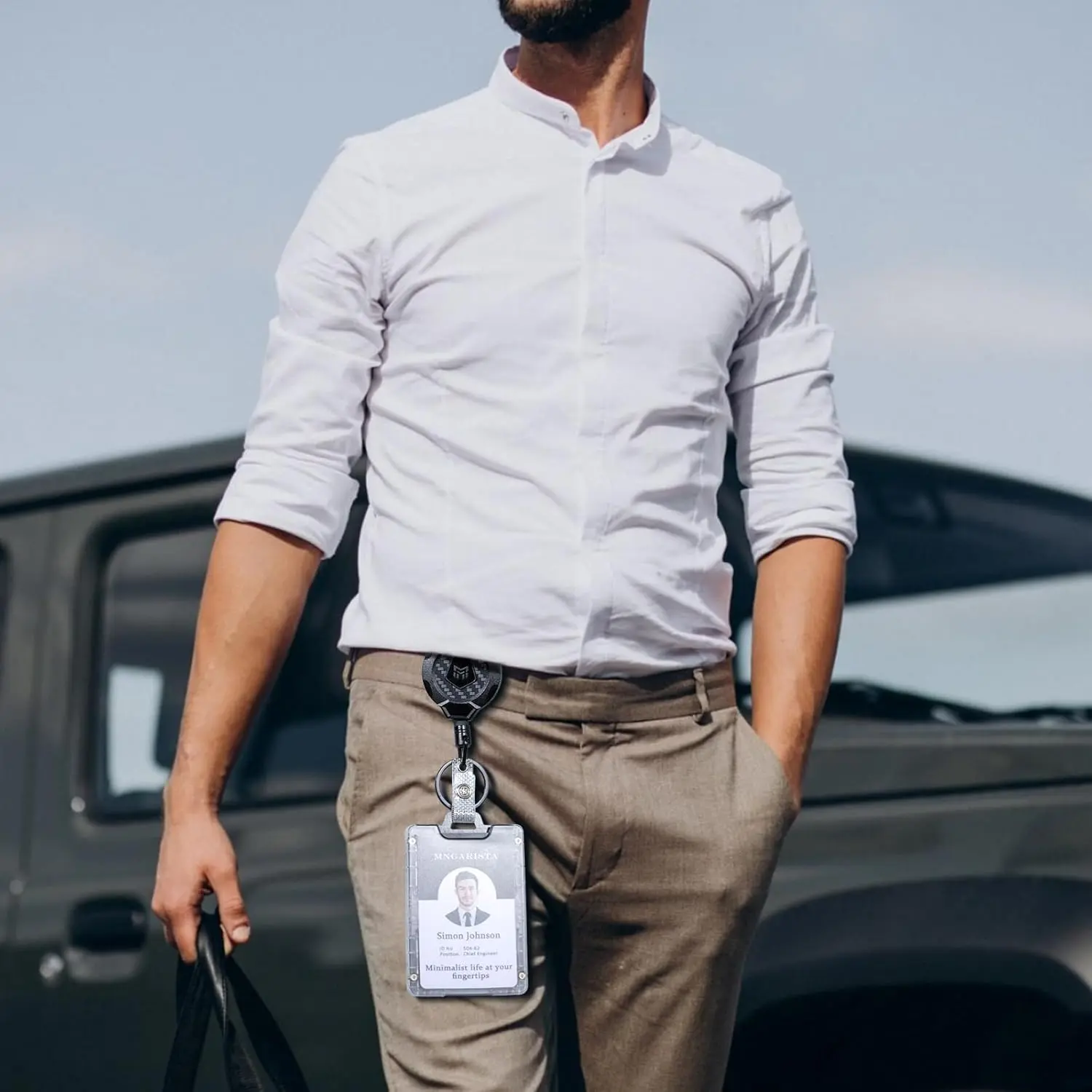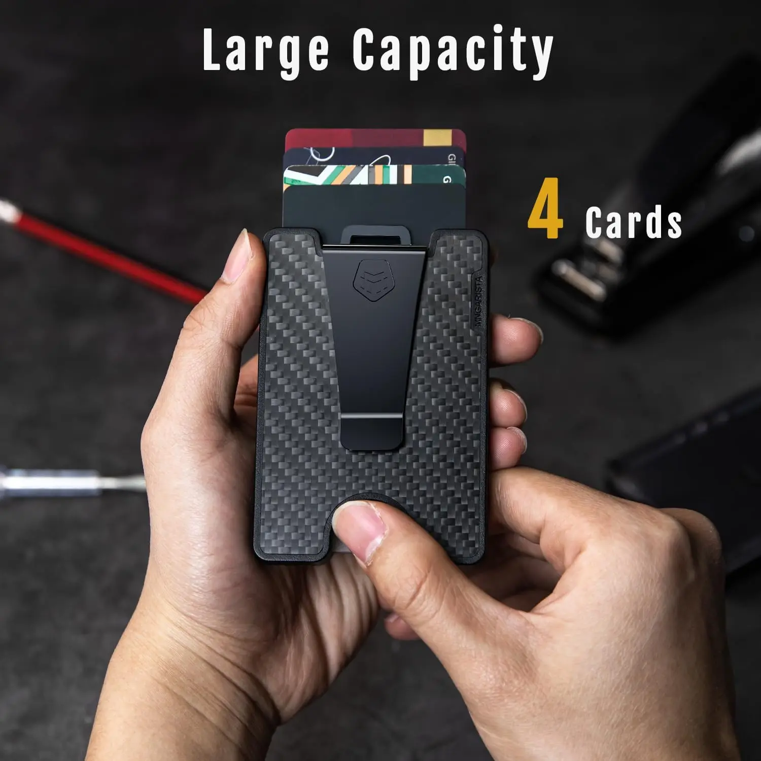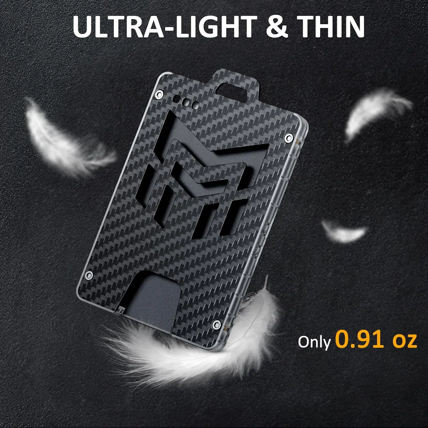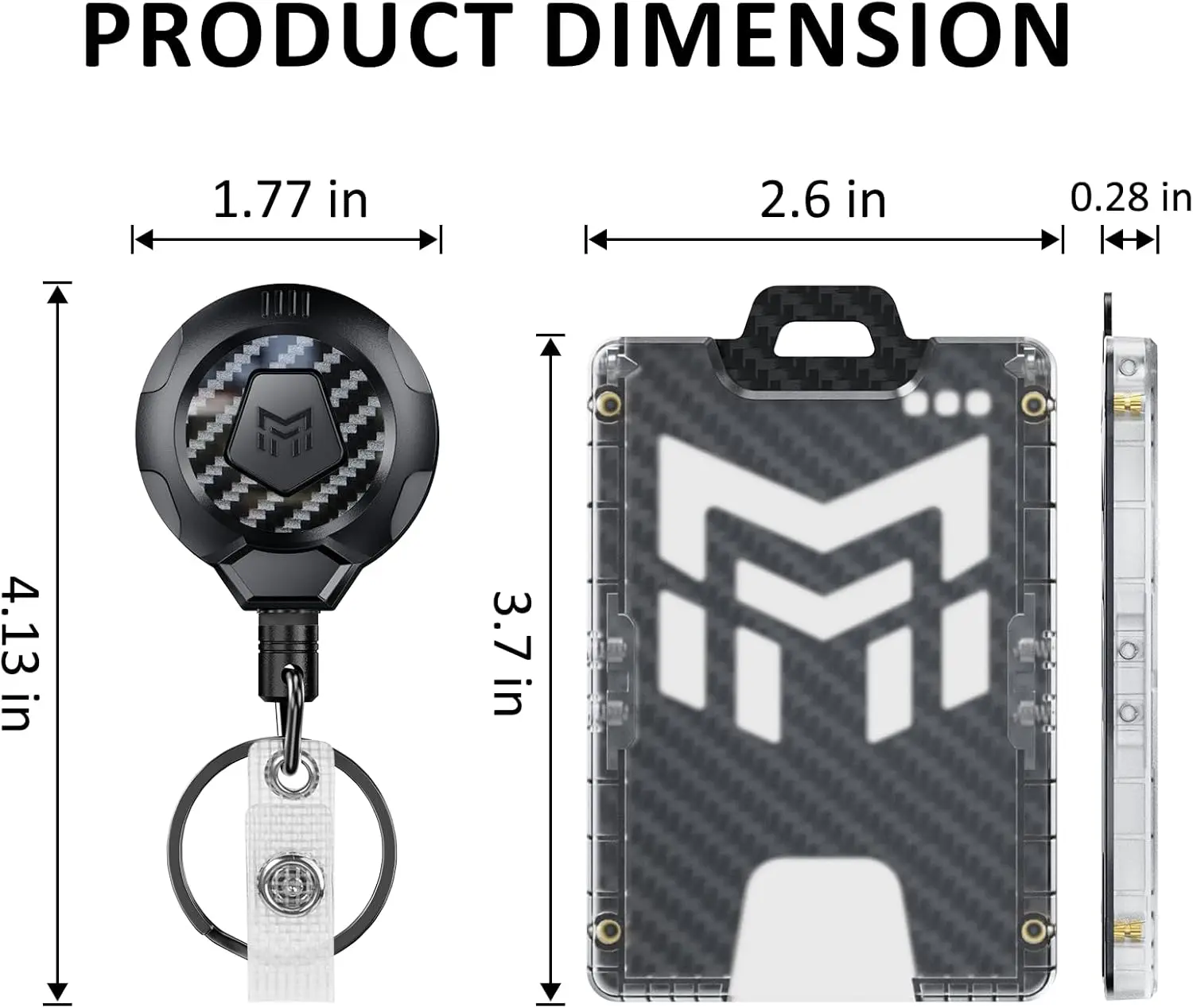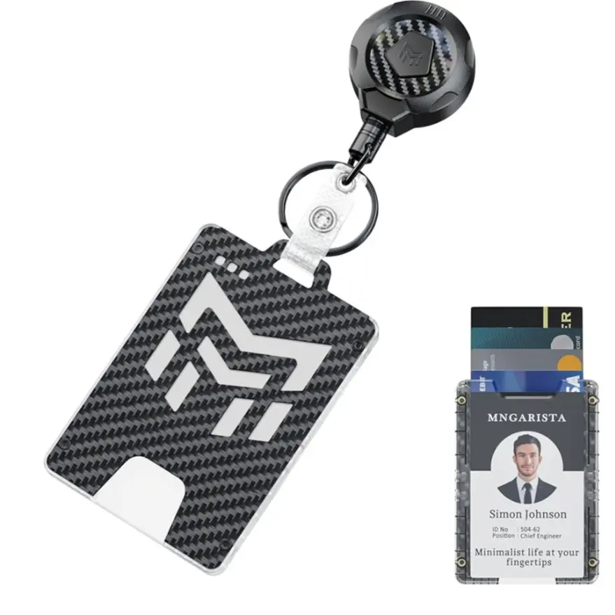 --The outer shell is made of ultra-light 3k carbon fiber and PC material, which is lightweight and durable, weighing only 0.91oz. Four elastic points on both sides of the interior ensure your cards are securely fastened. Recessed brass nuts at the four corners securely fasten the carbon fiber plate and polycarbonate shell, eliminating the worry of screws falling out and the badge holder falling apart.