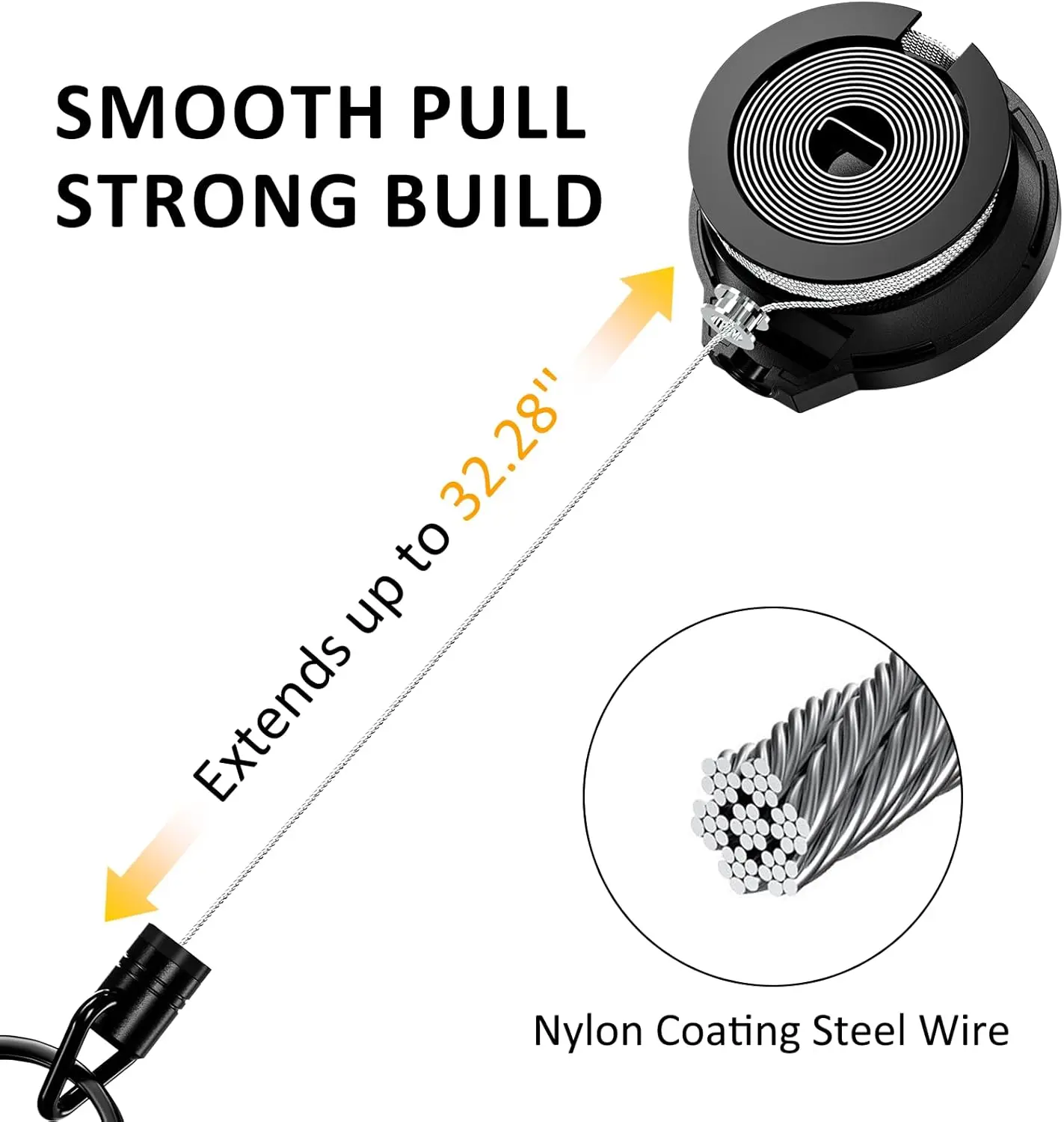--The retractable key chain can be attached to your belt or backpack for daily use, eliminating the need to search pockets or bags. The 32.28-inch retractable stainless steel cord allows quick access to keys and tools when you need them.