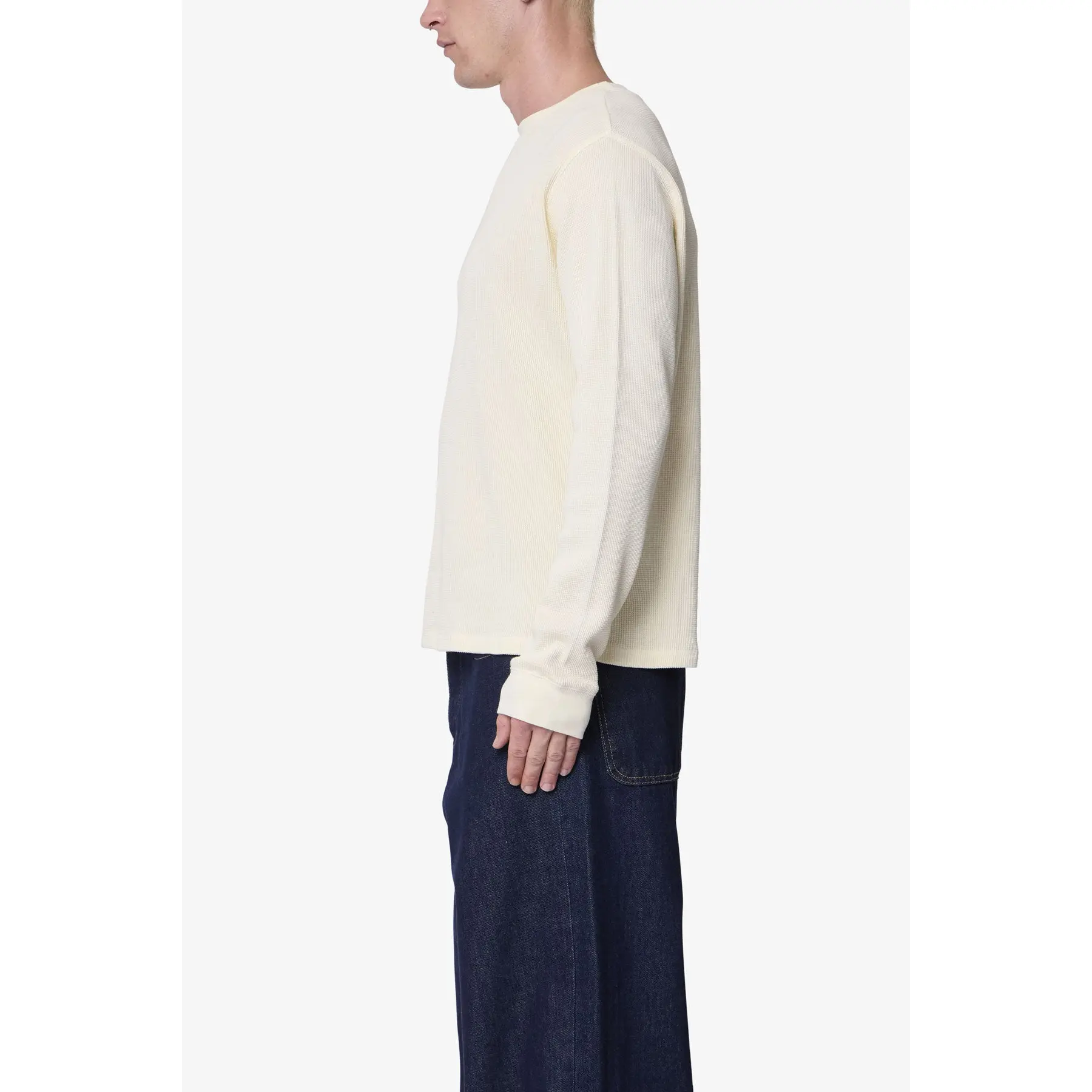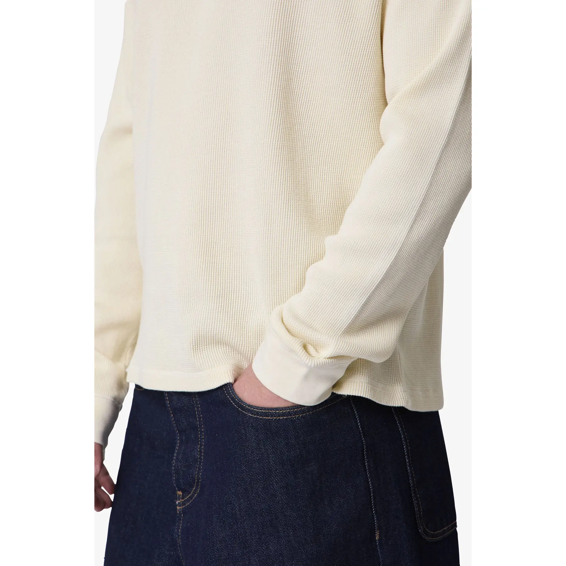 The Basic Thermal L/S Tee delivers a structured essential with added texture and weight for everyday wear. Made from 300 GSM cotton thermal, it has a substantial hand feel with a breathable waffle-knit construction that sits comfortably on body. Garment washed for a soft finish and lasting shape retention, it’s built to hold up through repeated use. A dependable layer that stays in rotation.