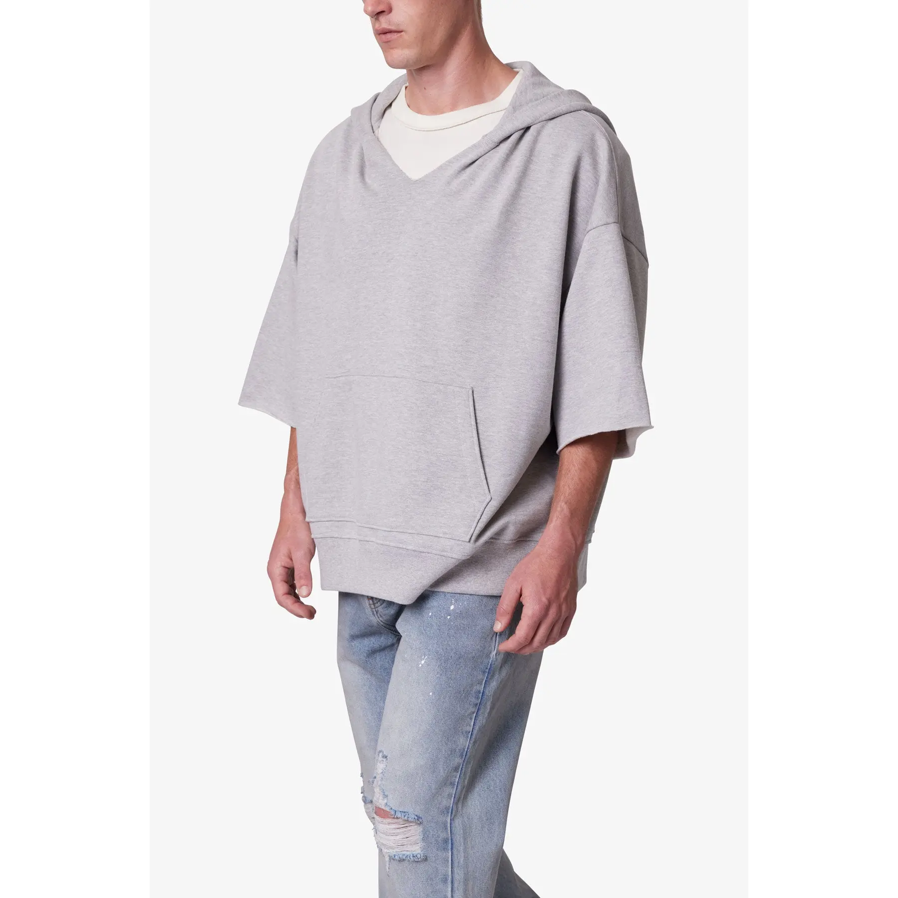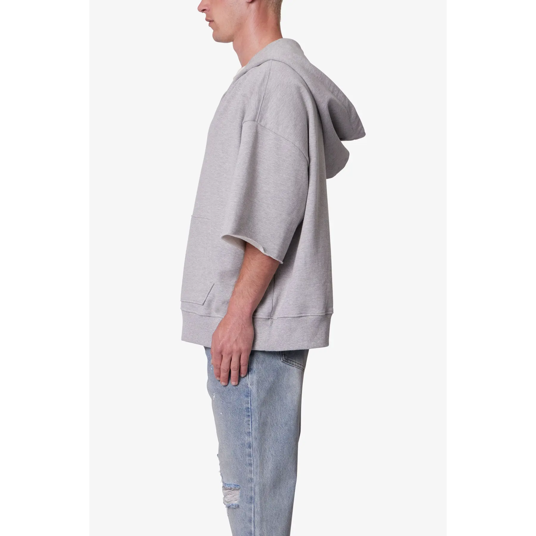 mnml Hooded 3/4 Sleeve Rag Sweater - Grey