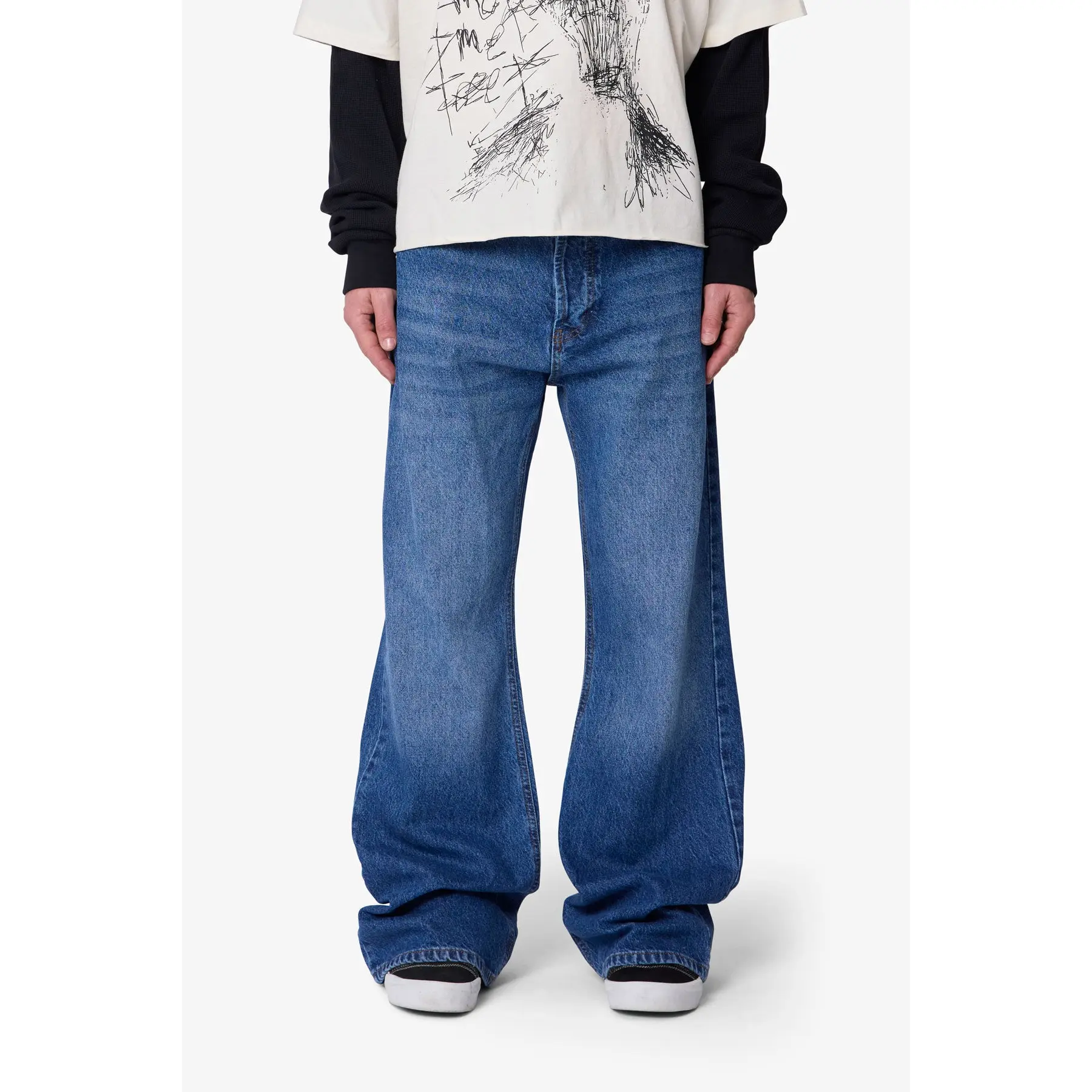 I love how these jeans fit like a mix of ultra baggy and flare. Very comfortable and look good on the body