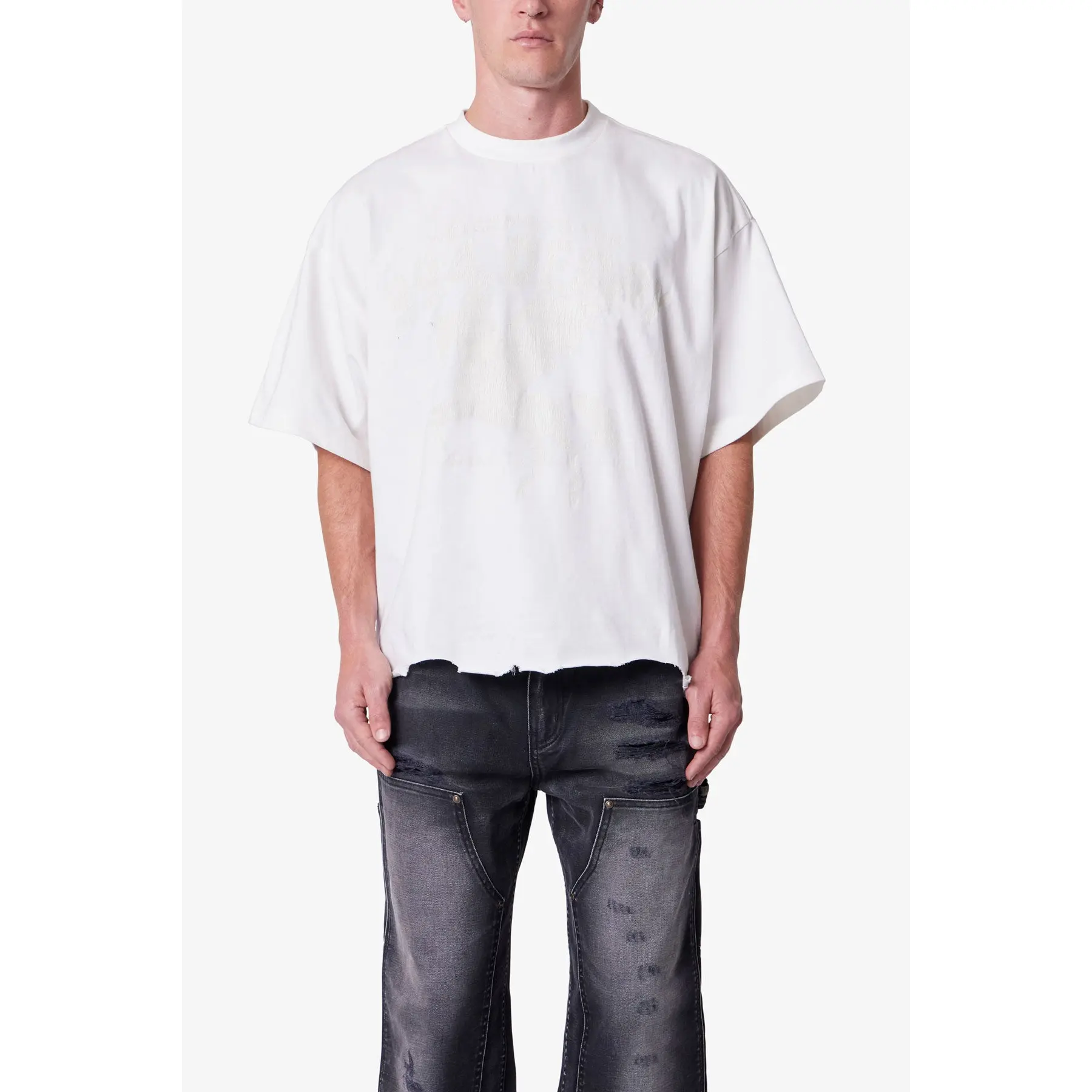 The perfect cropped distressed tee from @mnml 🔥🔥🔥 ##fashion##mensfashion##croppedtee##outfitinspo