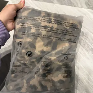 Material is thin enough to wear during spring. Print is camo meets leopard. Medium is nice and loose.