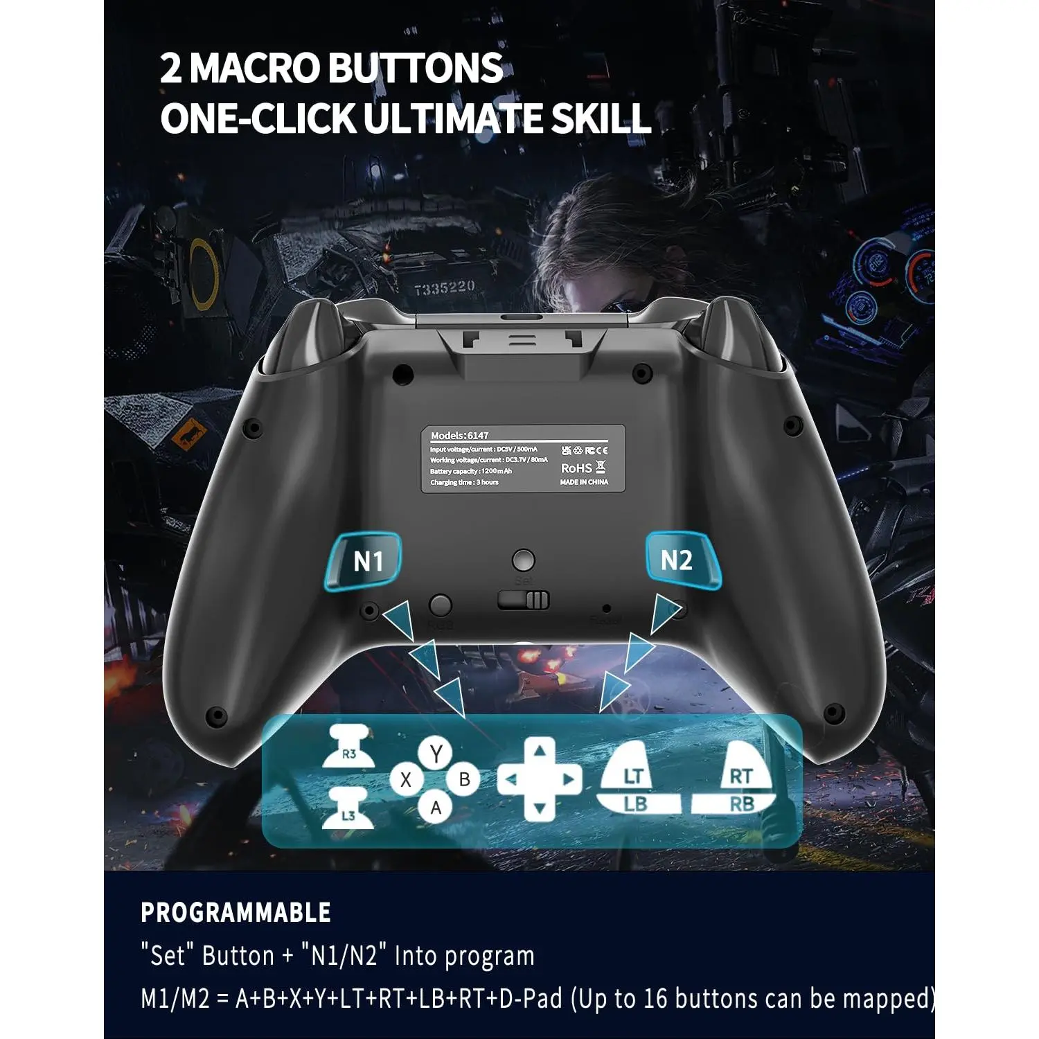 【One-key Pairing and 2 Programming Macro 】Easily pair with (iOS/Android//PC) devices via 5.0 and the mode button. Players could customize a combination up to 30s with N1/N2 to program the 21 buttons ( A/B/X/Y... key) of the controllers. For Convenient to some players' using habit, the operating button of this controller could be your reliable replacememt controller.