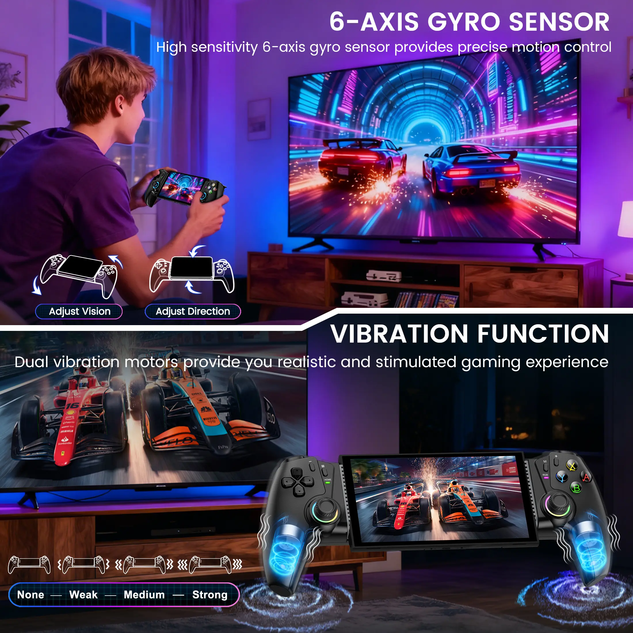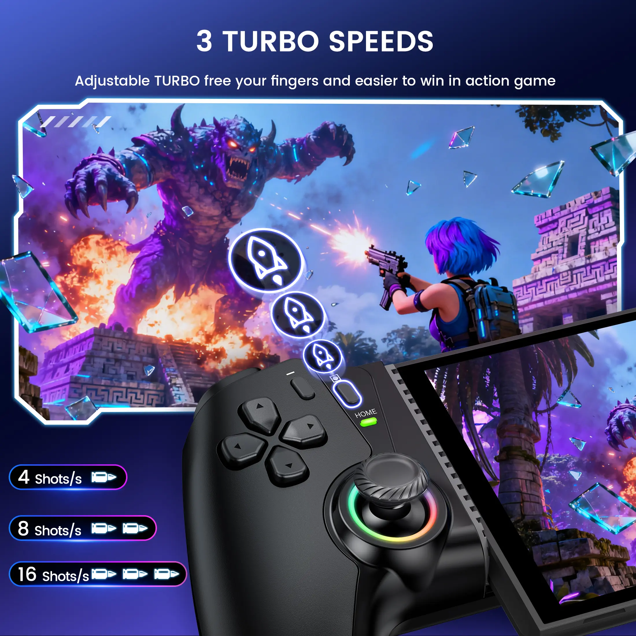【ADJUSTABLE TURBO SPEED & 6H PLAYING TIME】 The switch 2 controller for gaming has adjustable TURBO function (4/8/16 shots/s), free your fingers and make you easier to win in action game. Dual vibration motors enhance the game immersion, provide you realistic and stimulated gaming experience! Built-in rechargeable 800mAh high capacity battery provides over 6 hours game playing, and it can be fully charged within 2-3 hours. Never worry about game interruptions, enjoy your gaming time