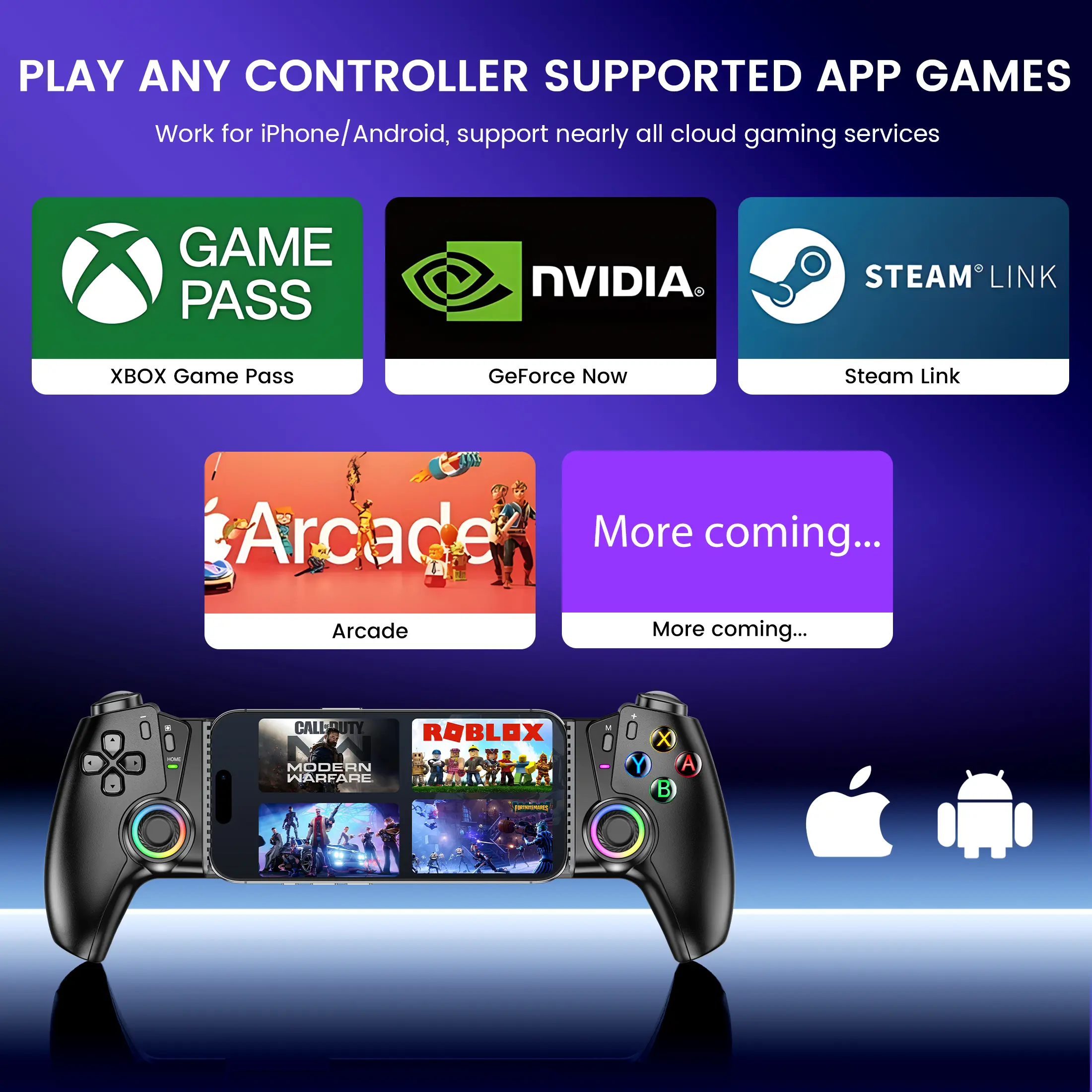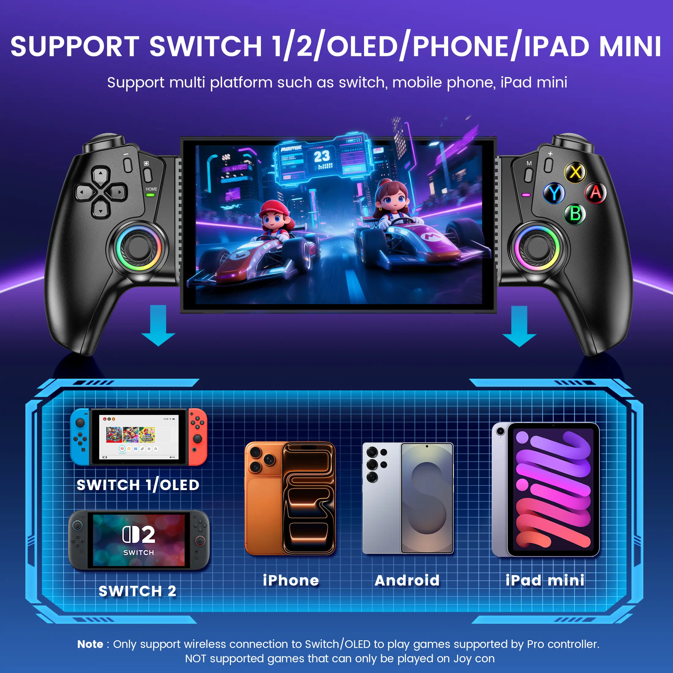 【PLAY ANY CONTROLLER SUPPORTED GAMES】 The switch 2 controller is designed to enjoy unstoppable gaming experience, work for Switch 2/Switch/OLED/Android/iPhone, support nearly all cloud gaming services including Xbox Cloud、Steam Link、GeForce Now、MFi Apple Arcade & hundreds of popular mobile games like Call of Duty, Roblox, Fortnite etc. (Games that can only be played with Joy Con are not supported. Supports motion sensing and screenshot recording on Switch. Does not support Amiibo)