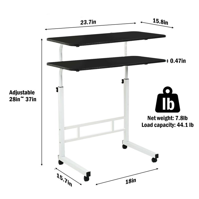 Strong and Durable: The rolling laptop desk is made of high-quality materials and can withstand up to 44.1 pounds of weight. The desktop (31.5'L x 15.8'W) is spacious enough to accommodate computers, laptops, mice, cups and other items.