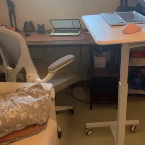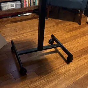 Absolutely obsessed and use it every day!! So much so I ordered another one !! Super sturdy and adjustable height easy to roll over carpets and around the house can take to the bathroom kitchen bedroom ! Don’t have to commit to Lshape desk can move when I want and stand!
