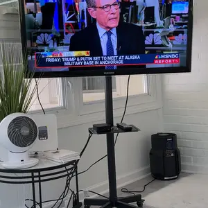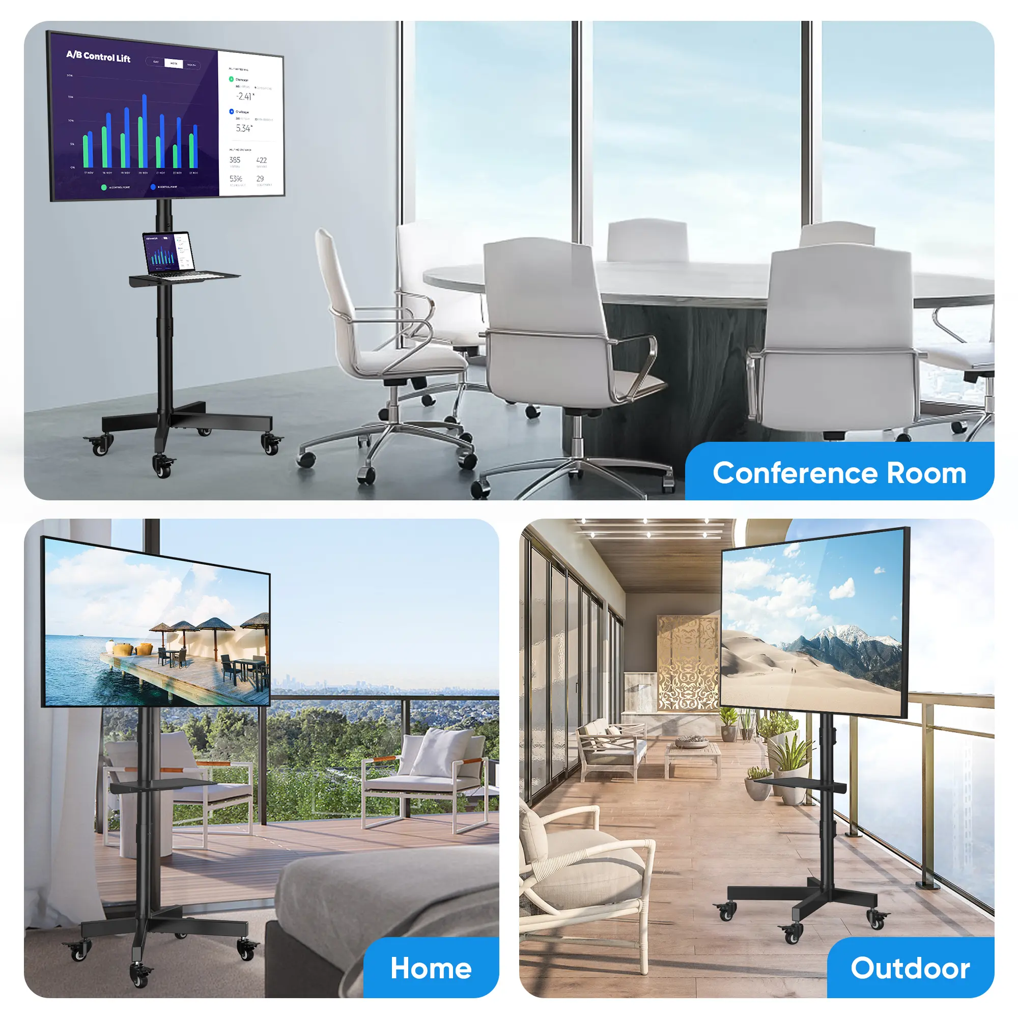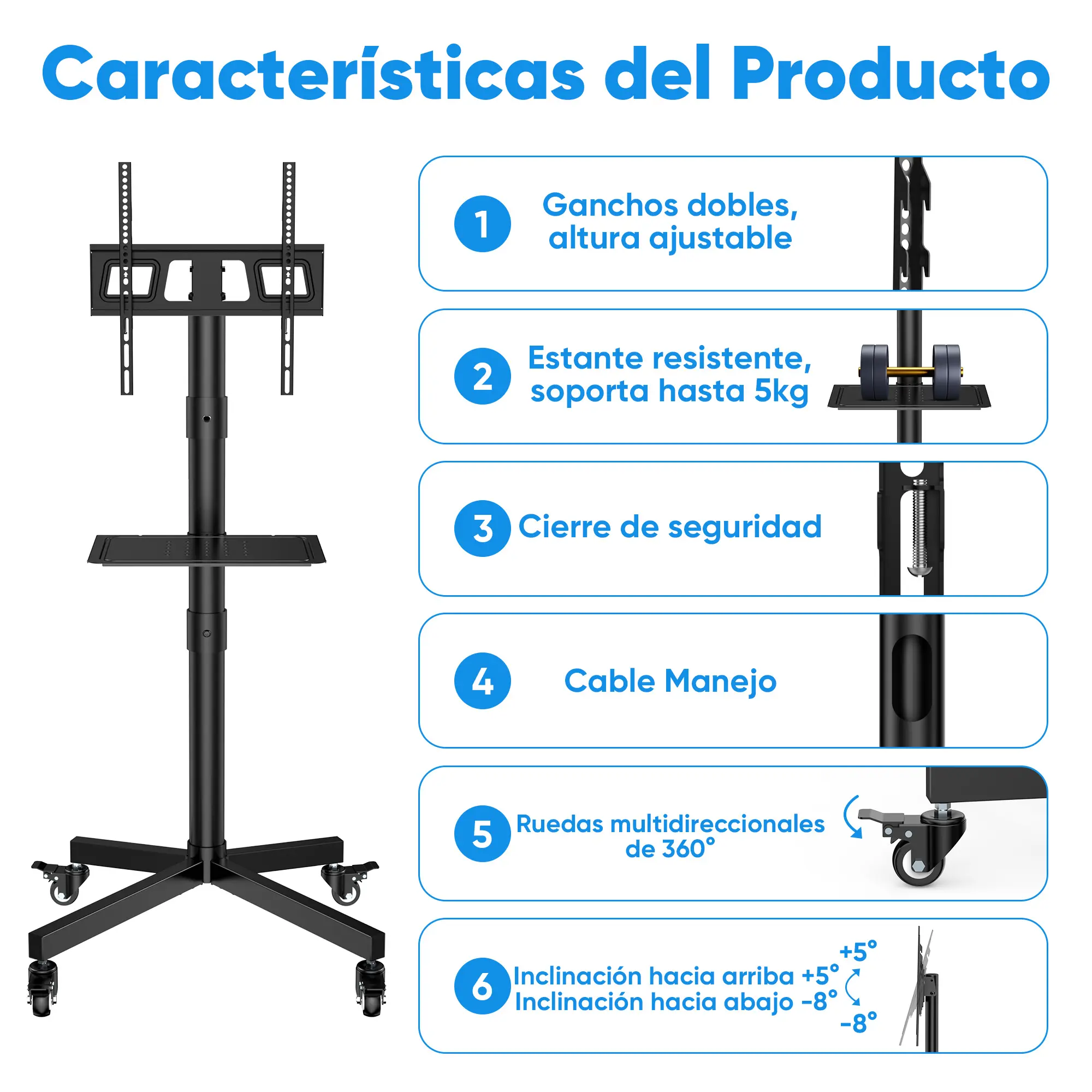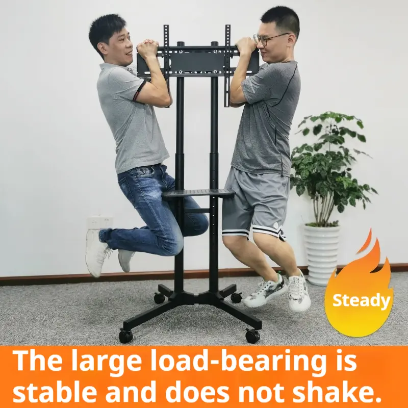 High-quality 4 casters allow for 360-degree rotation. Each wheel has a foot brake at the front, making it easy to secure the TV in place with your feet. This trolley is significantly better than those without foot brakes. It moves easily between rooms without drilling.