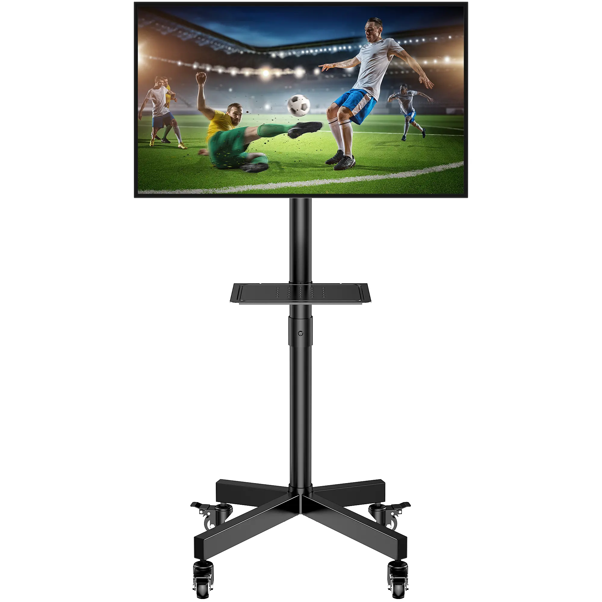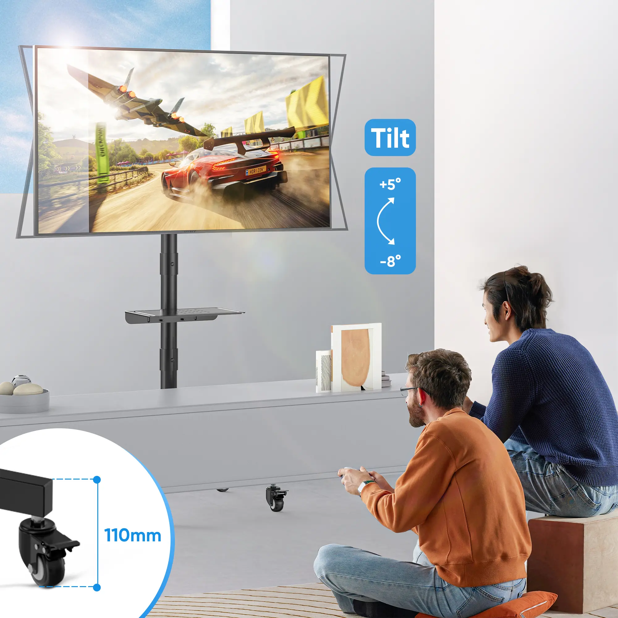 This floor-standing TV stand has a VESA connector measuring 100x100 mm to 400x400 mm, compatible with most 23-inch to 65-inch LED, LCD, OLED, QLED flat-screen and curved TVs. This portable TV stand with wheels can support a maximum weight of 88 lbs (approximately 40 kg). It's perfect for easily moving your TV at home or in the office.