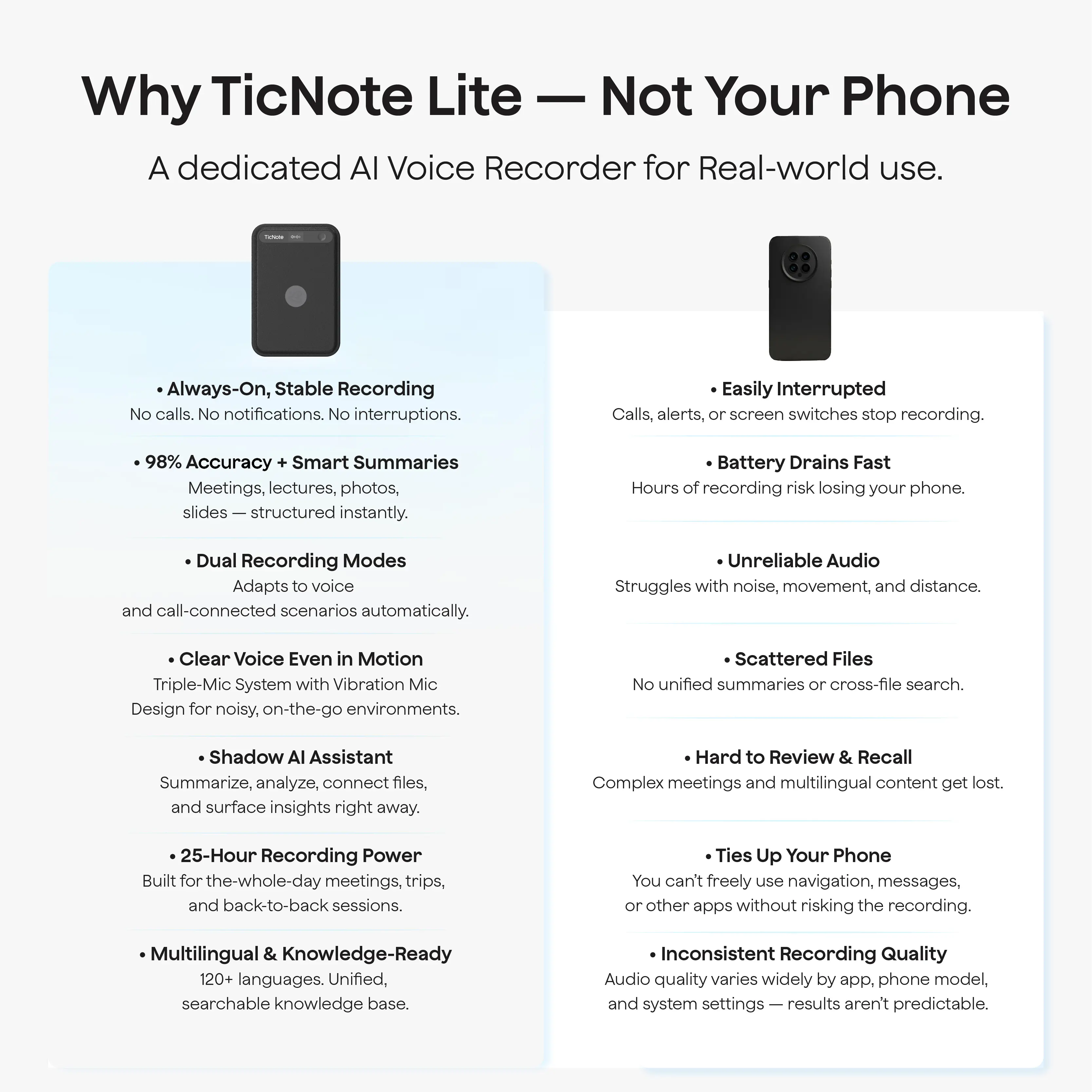 From lectures and boardrooms to cross-border calls and daily planning — TicNote Lite keeps your thinking structured and accessible.