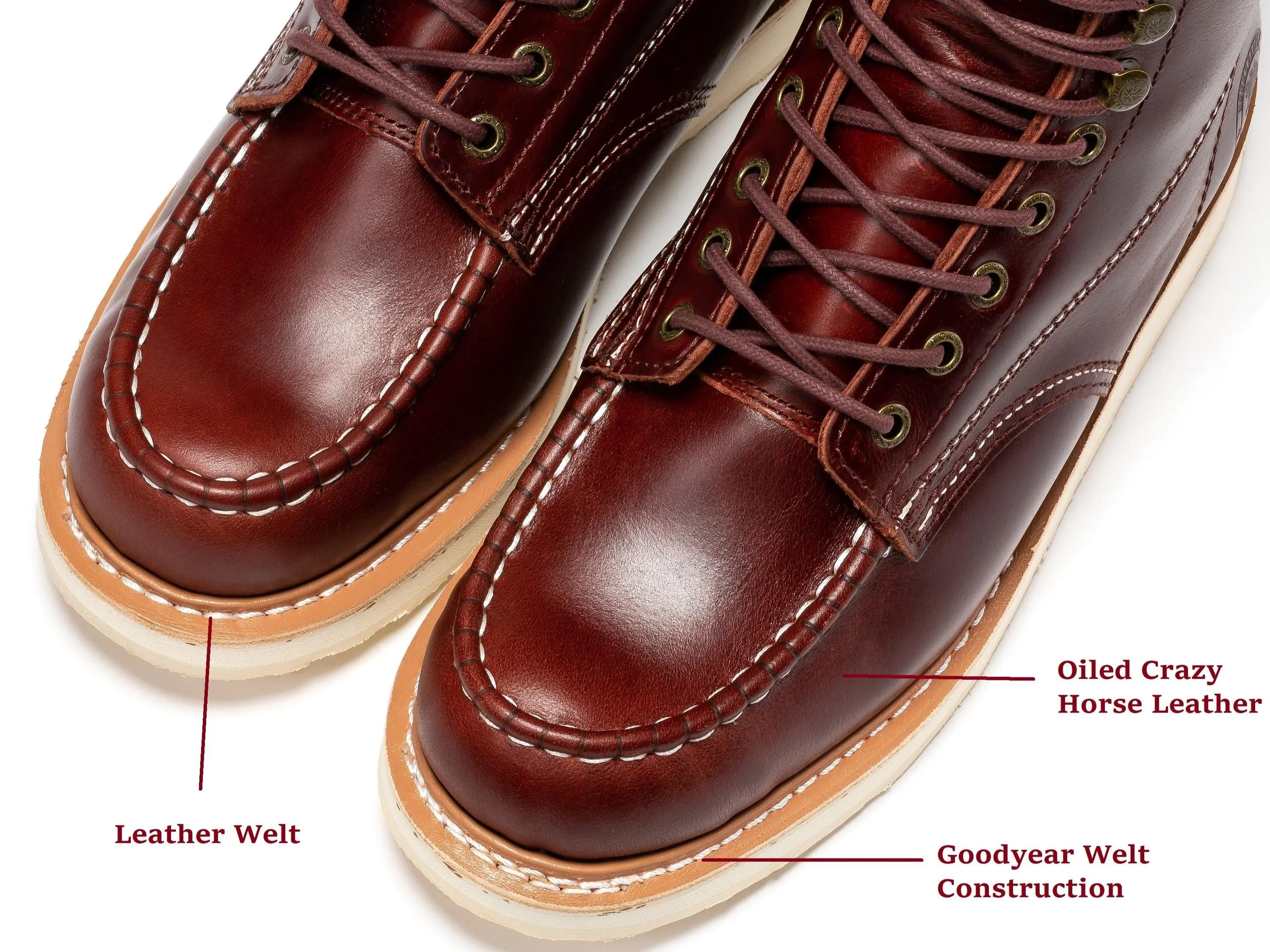 ·Premium Materials: Oiled Crazy Horse leather upper in rich burgundy color