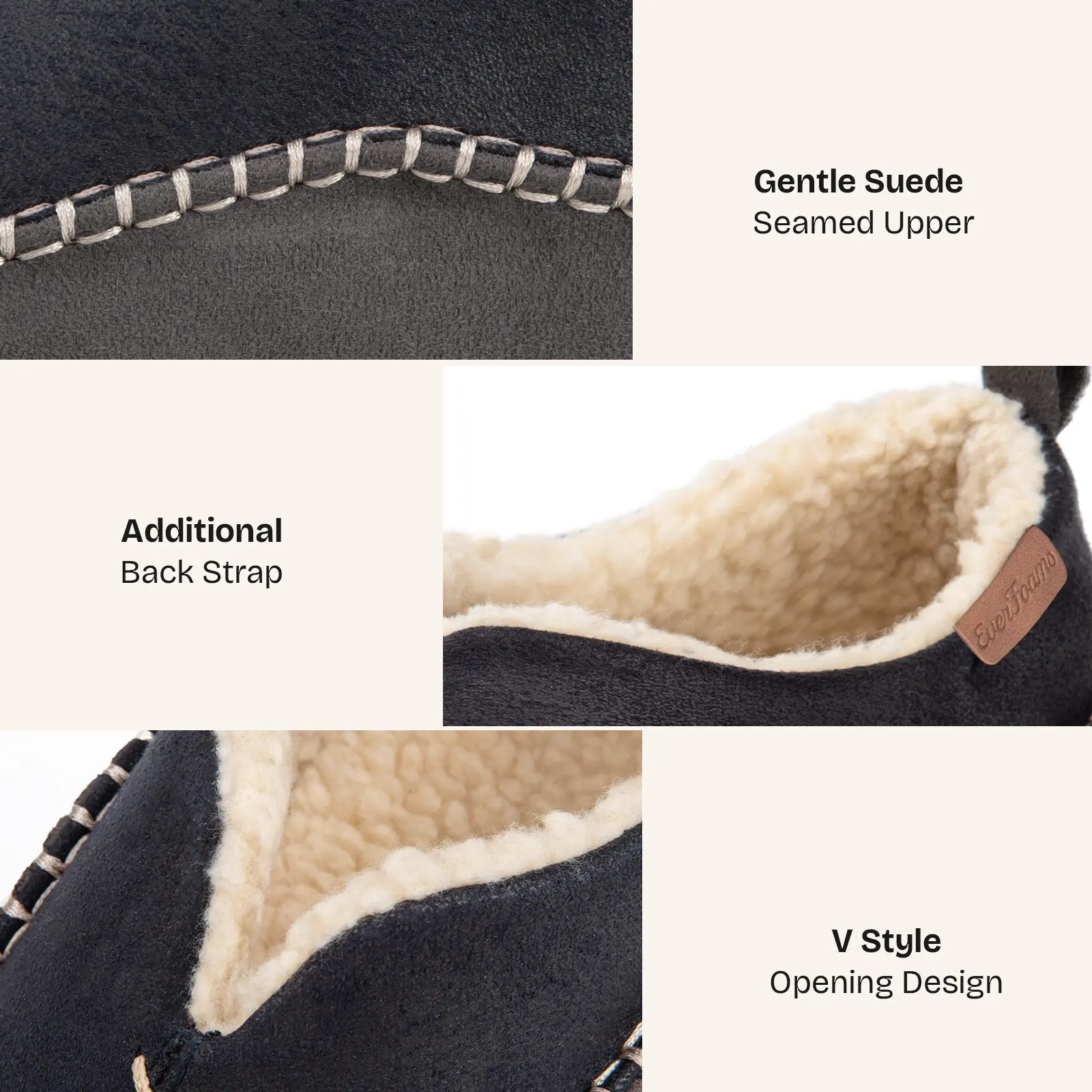 ·STYLISH MICRO SUEDE MOCCASIN SLIPPERS: Gentle micro suede upper added meticulous seaming craft lead to a classic moccasin slipper