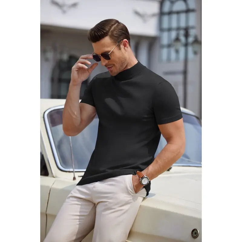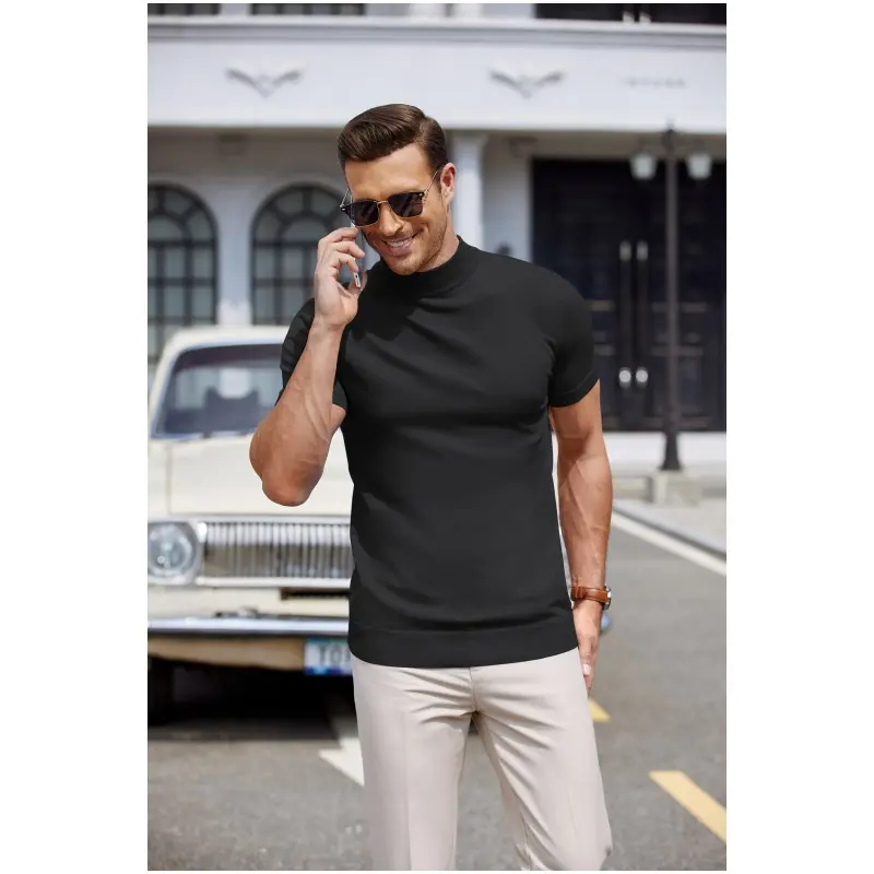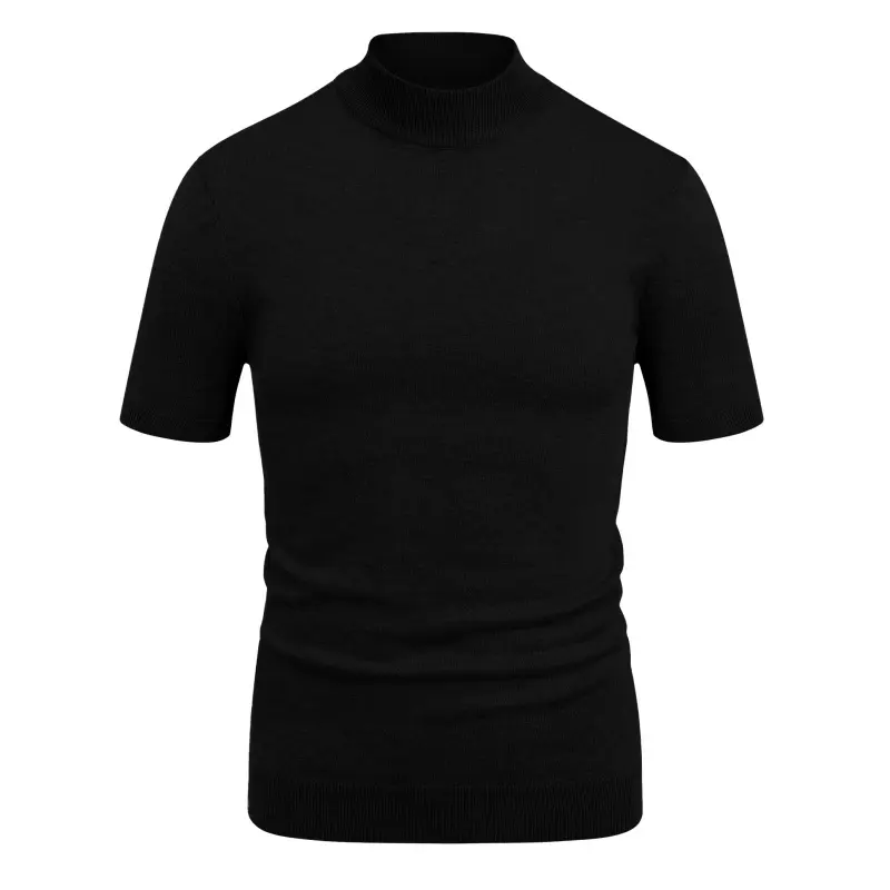 【Fashion Design】This men's short-sleeved pullover features with unique half turtleneck design, knitted fabric, slim fit, solid color, the perfect blend of classic and fashionable elements, which can show off your personalty.