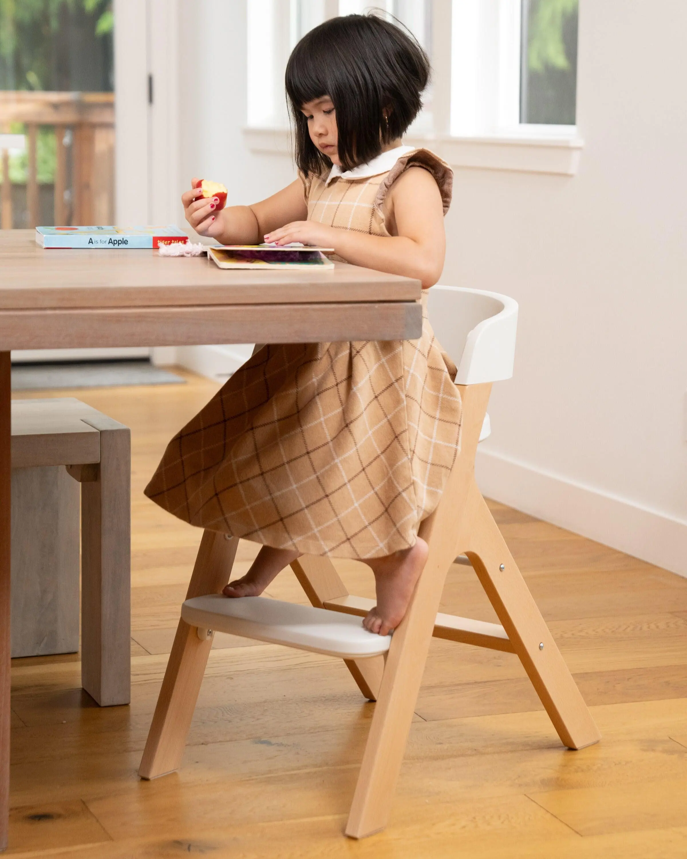 Designed by parents for parents, our 2-in-1 high chair converts to a child chair as your little one grows and comes packed with thoughtful features to make mealtime (and clean-up!) a whole lot easier. Features easy-wipe silicone straps, a stain-resistant tray liner (detachable and dishwasher safe), an adjustable footrest (no tools required), adjustable tray depth, and made with non-toxic materials.