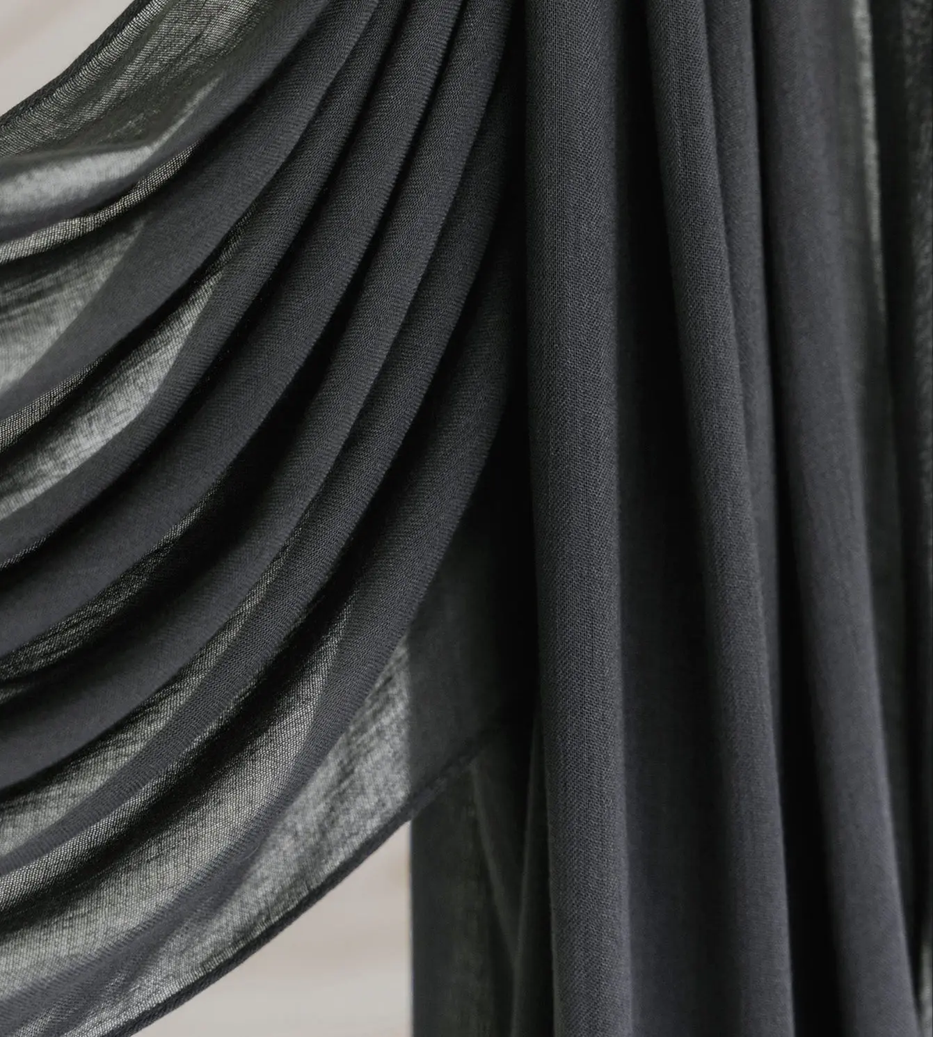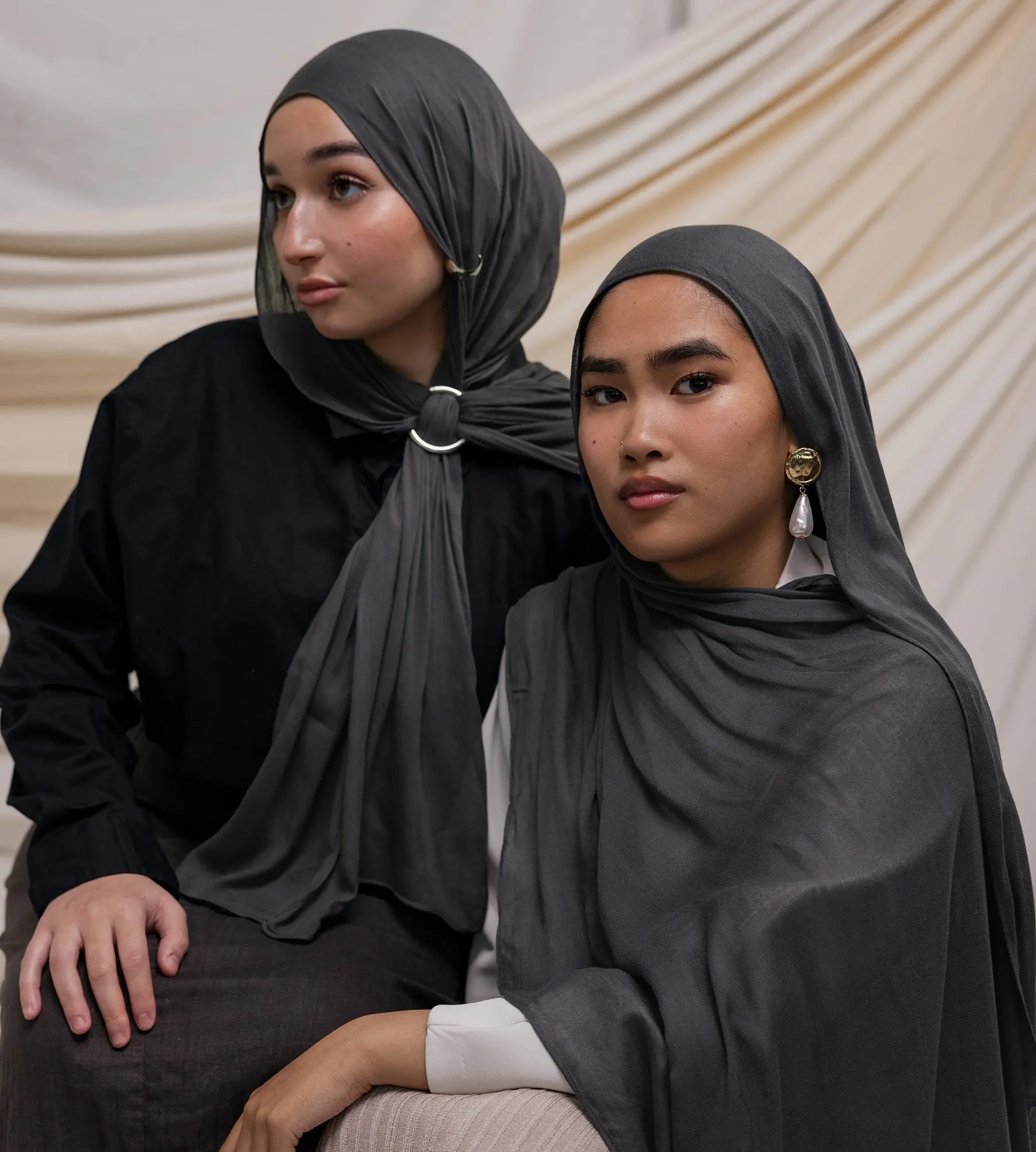 The perfect deep neutral you’ve been waiting for. Whether styled casually or dressed up, this refined Dark Gray modal hijab will complement any look with effortless sophistication. Explore the versatility of our woven hijabs, featuring the understated elegance of our Dark Gray modal hijab. Find your next wardrobe essential online, exclusively at VELA.
