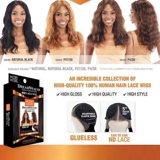 ModelModel Human Hair HD Lace Front Wig Dream Weaver Glueless 5" Center Part Body 22"
