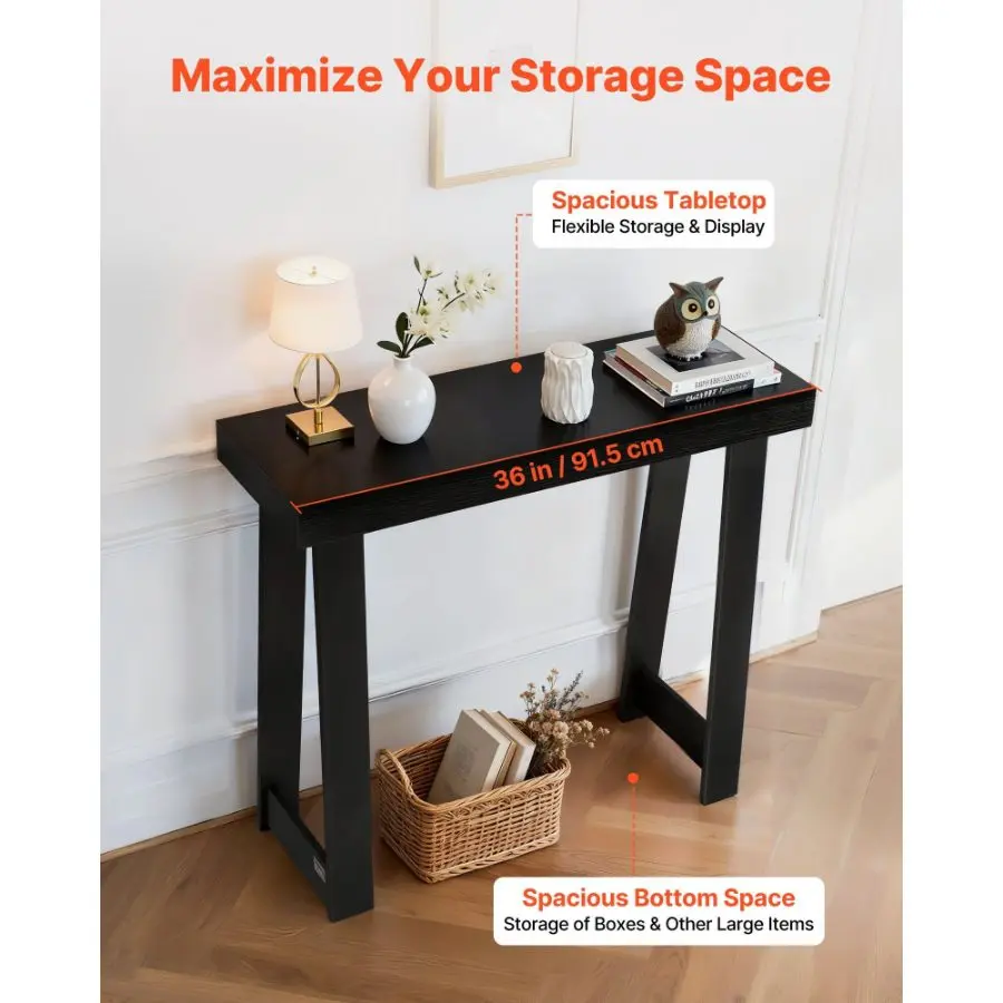 36 in Console Table, Modern Desk Behind the Couch, Wooden Rectangle Entrance Desk, Narrow Long Sofa Table Accent Stand, Ideal for Hallway, Bedroom, Living Room, Foyer, Easy Assembly, Black