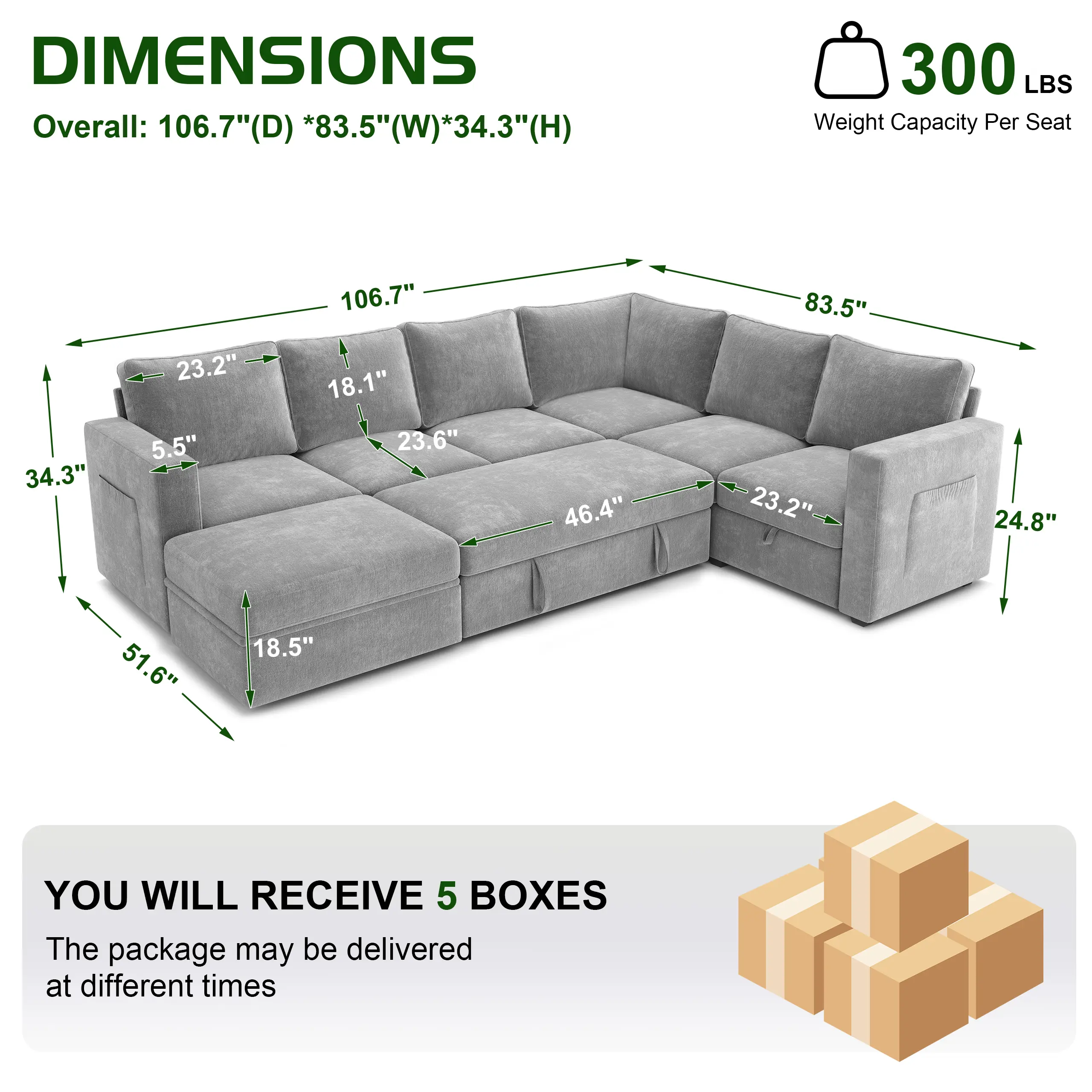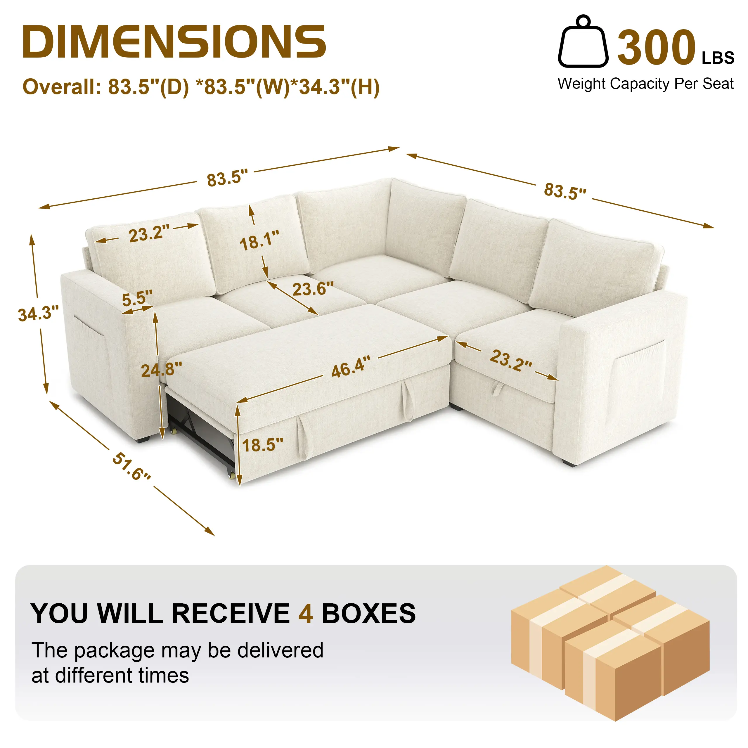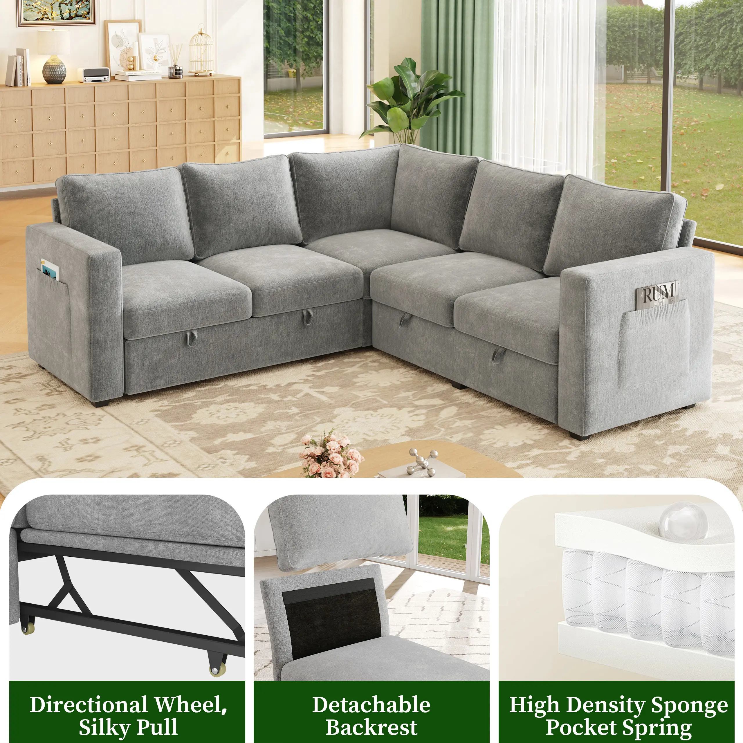 ·Easy Pull-Out Bed Design: The sectional couch effortlessly transforms into a cozy bed within seconds, an ideal choice for overnight guests, family movie nights, or optimizing comfort in small spaces