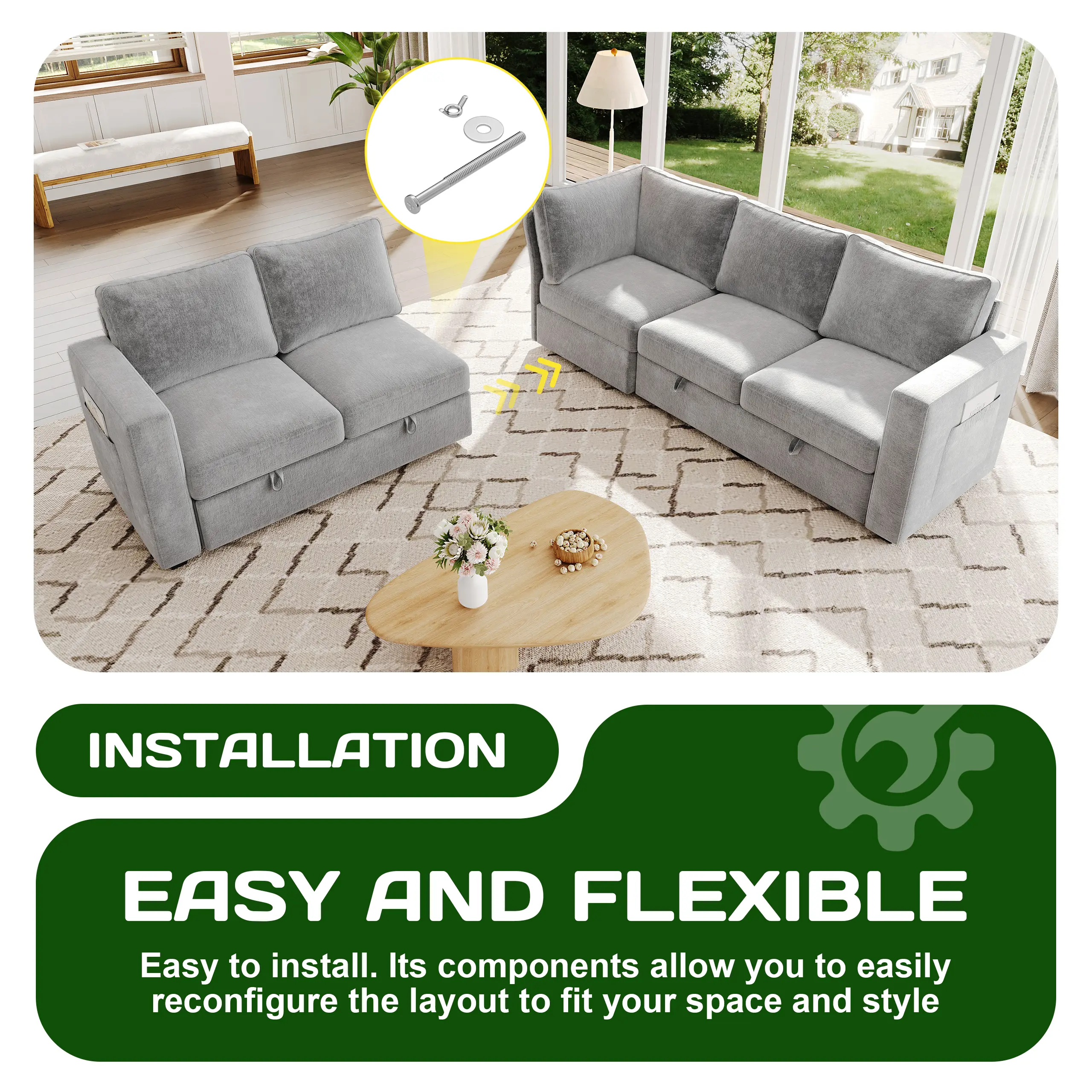 ·Modular Design with Storage: The LINSY HOME modular sofa can be rearranged to fit your space and sofa bed needs. Each seat includes hidden storage for blankets, pillows, toys, and other items to keep your living room neat and organized.