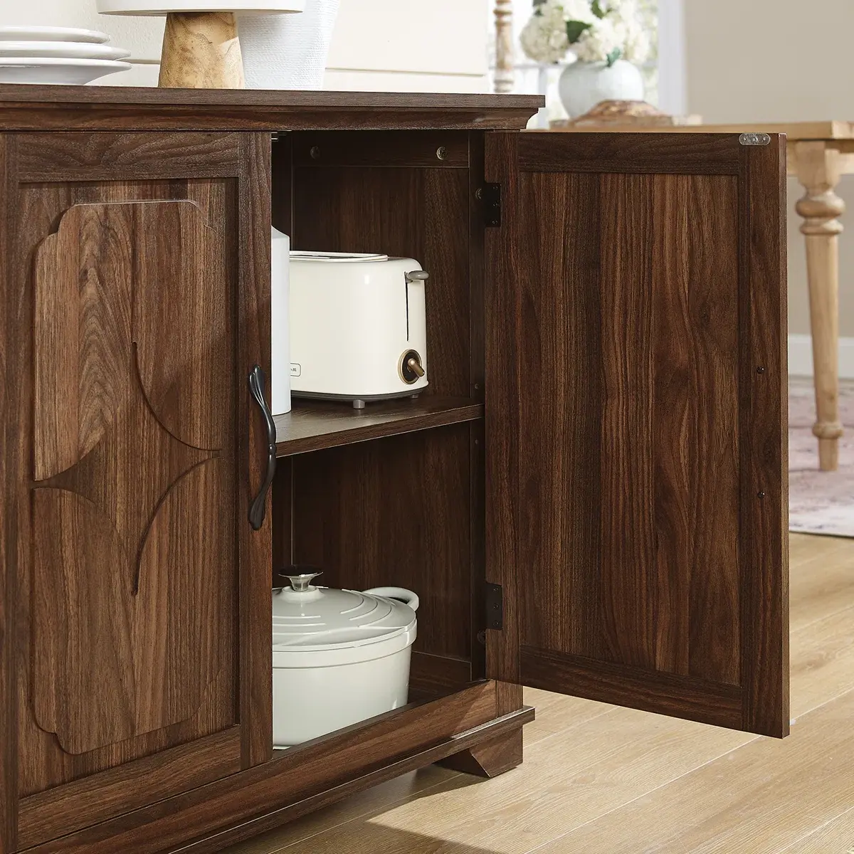 ·Sturdy and Durable: This buffet cabinet with storage adopts a thickened top plate, the side frame shape ensures the stability of the structure, and the bottom frame increases the thickness of the bottom, making the cabinet more durable and avoiding deformation