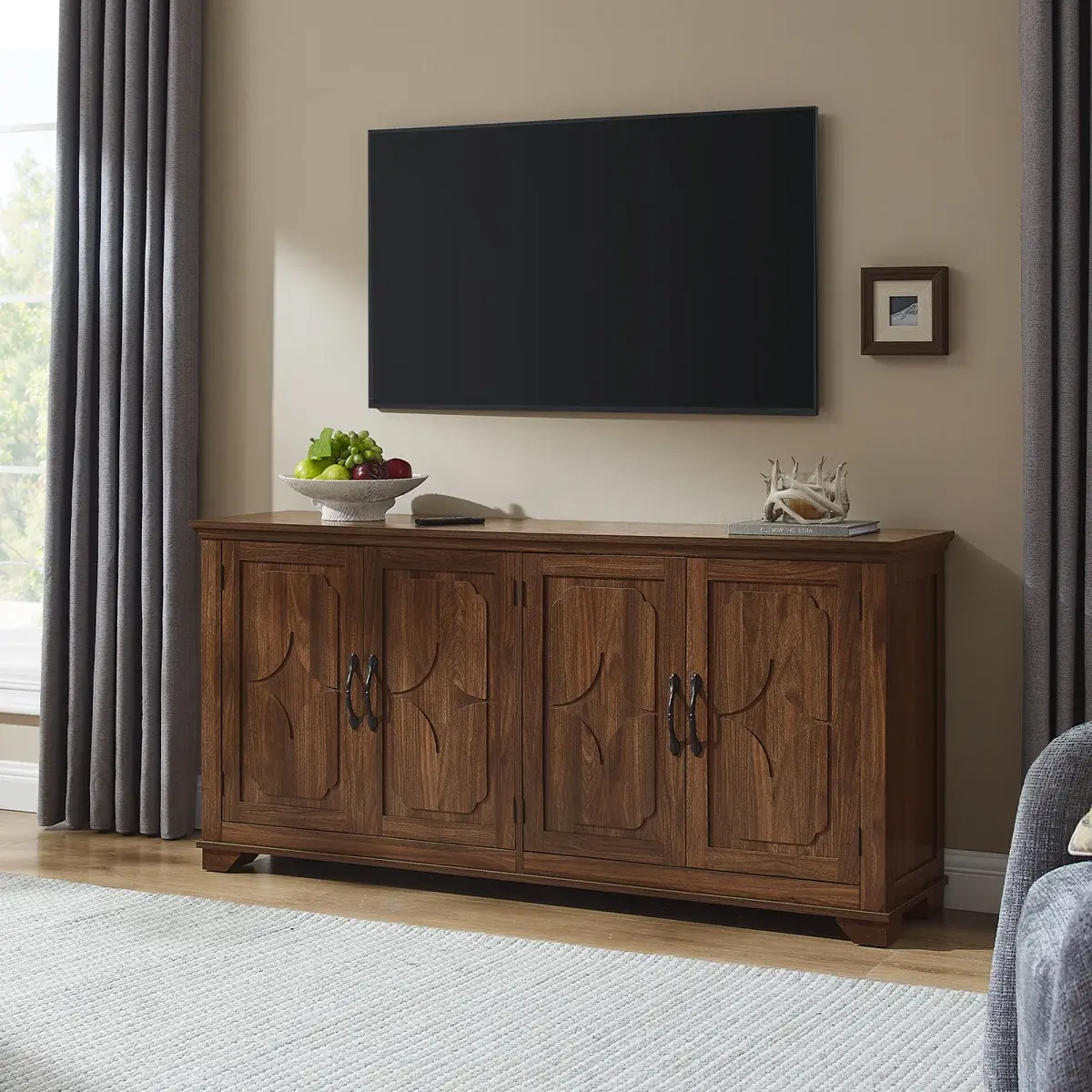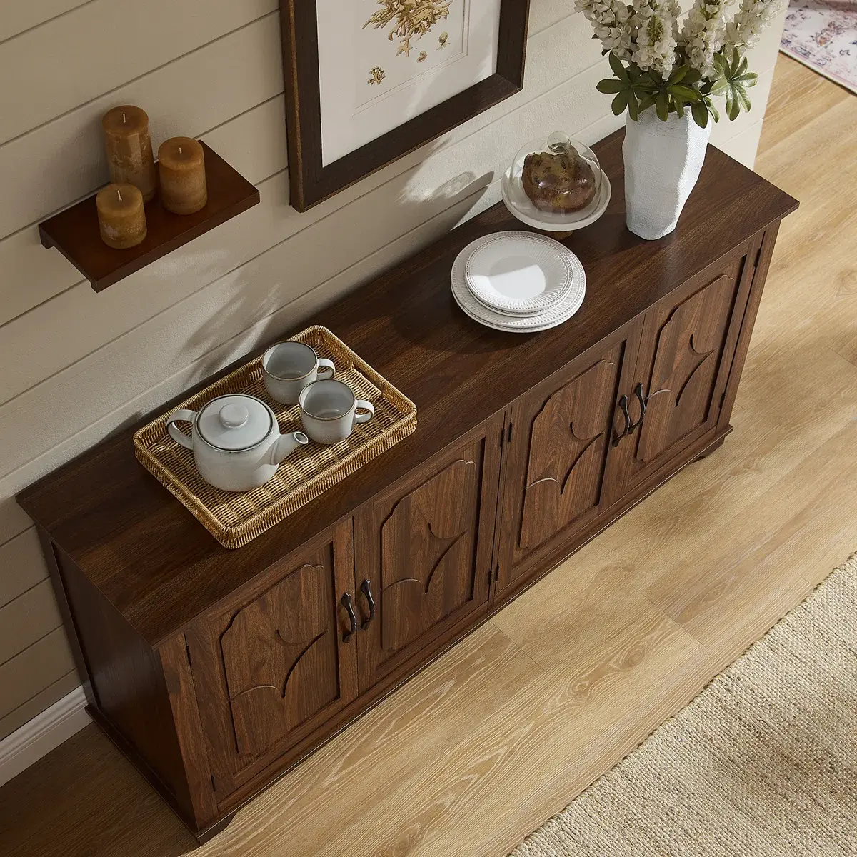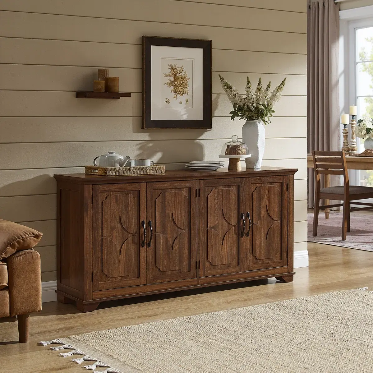 Upgrade your home with this stylish accent sideboard, featuring 4-door with a beautiful wood grain surface for a modern touch. Made from water-resistant MDF, this storage cabinet is stable and durable. Adjustable shelves divide the buffet table into four sections, perfect for storing dinnerware and media items. We also love that the 63-inch wide surface is ideal for displaying trays and vases during family gatherings. Plus, it includes an anti-tipping device for your family’s safety.