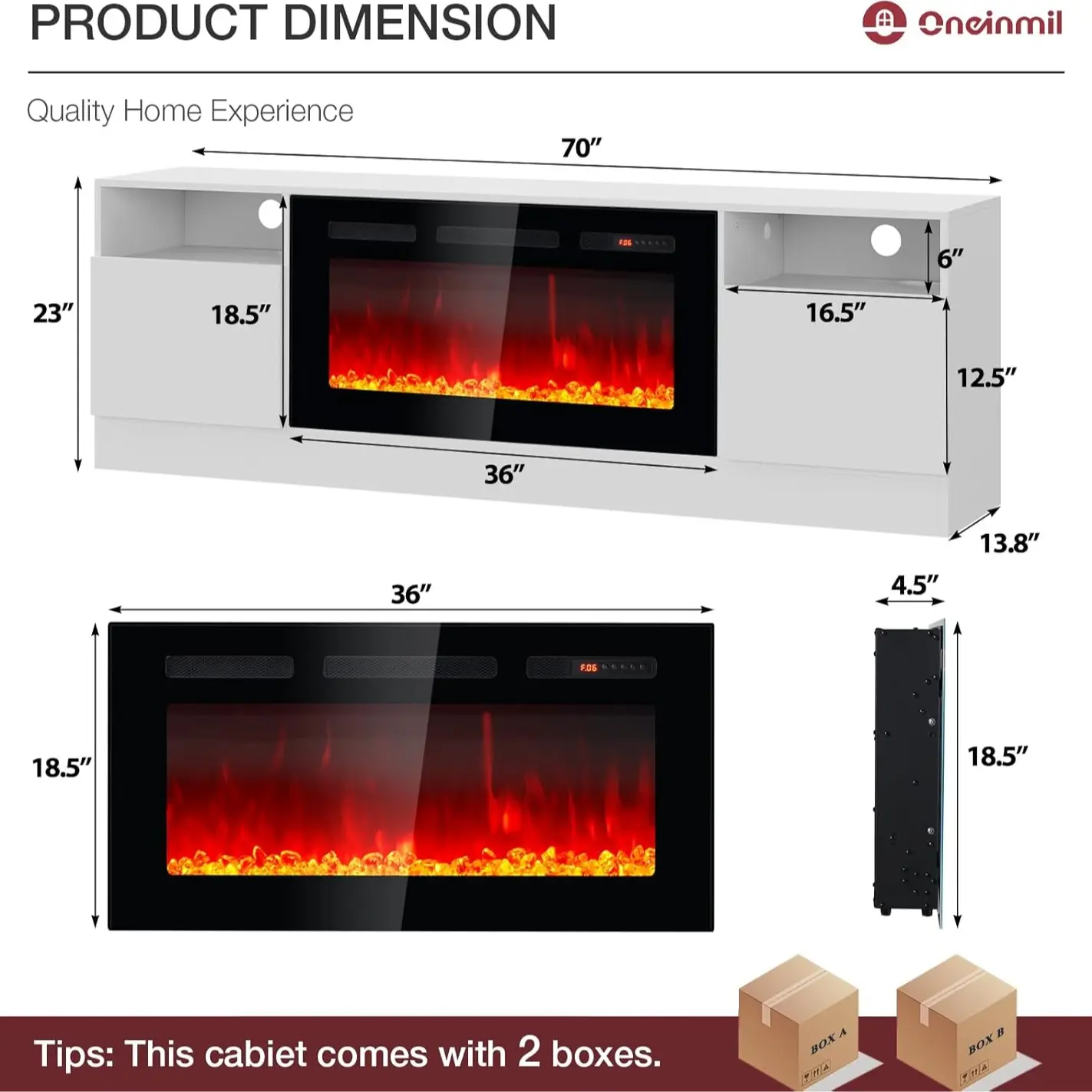 oneinmil Fireplace TV Stand | Modern Black & White