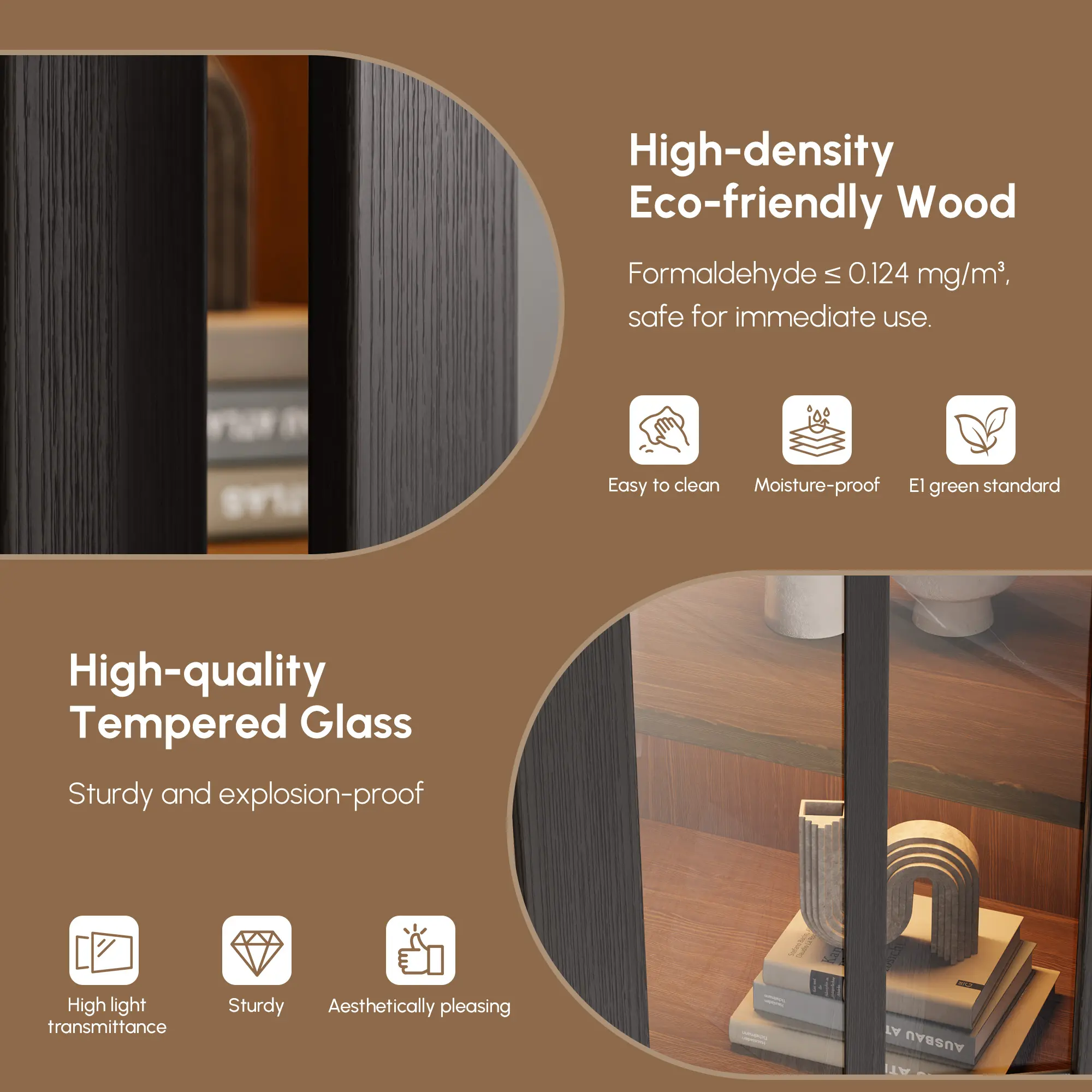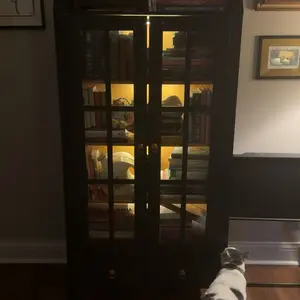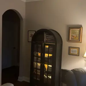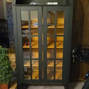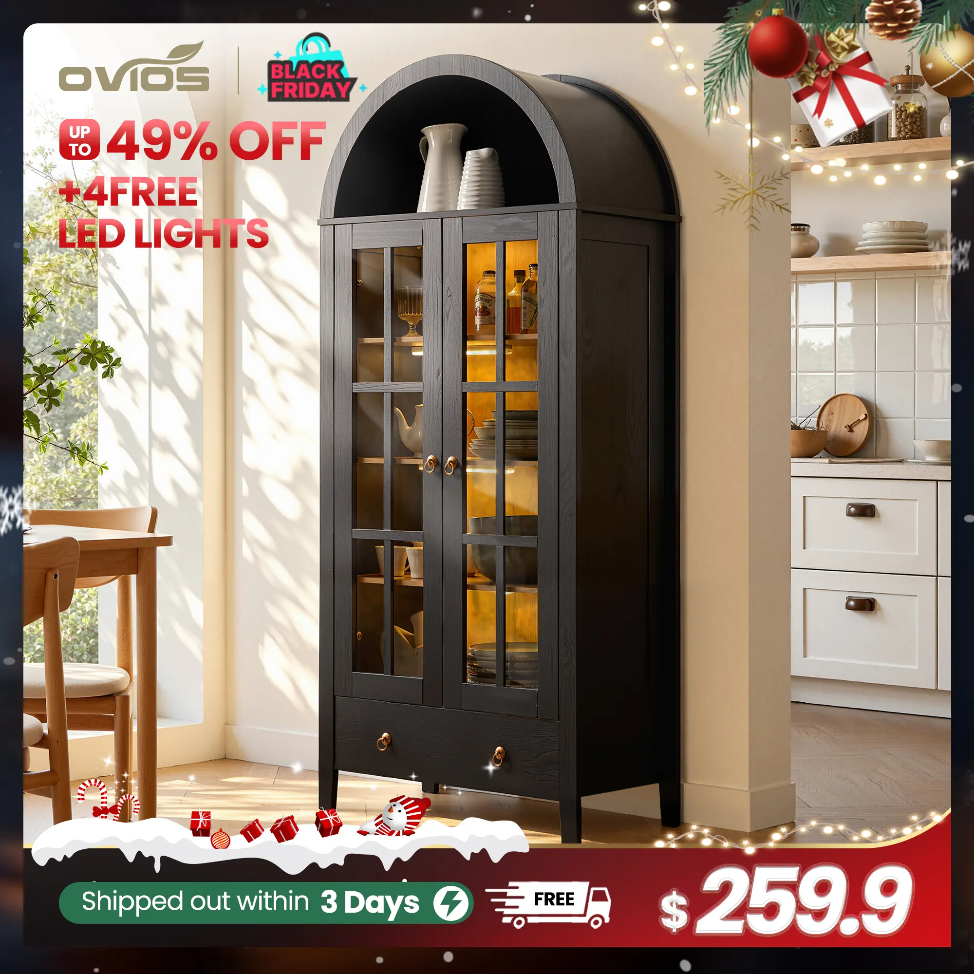 ·BEAUTIFUL LED LIGHTS : Brighten up your space with the 4 Magnetic LED lights that wrap Inside the arched glass cabinet. You can set the mood for cozy reading or intimate conversations.