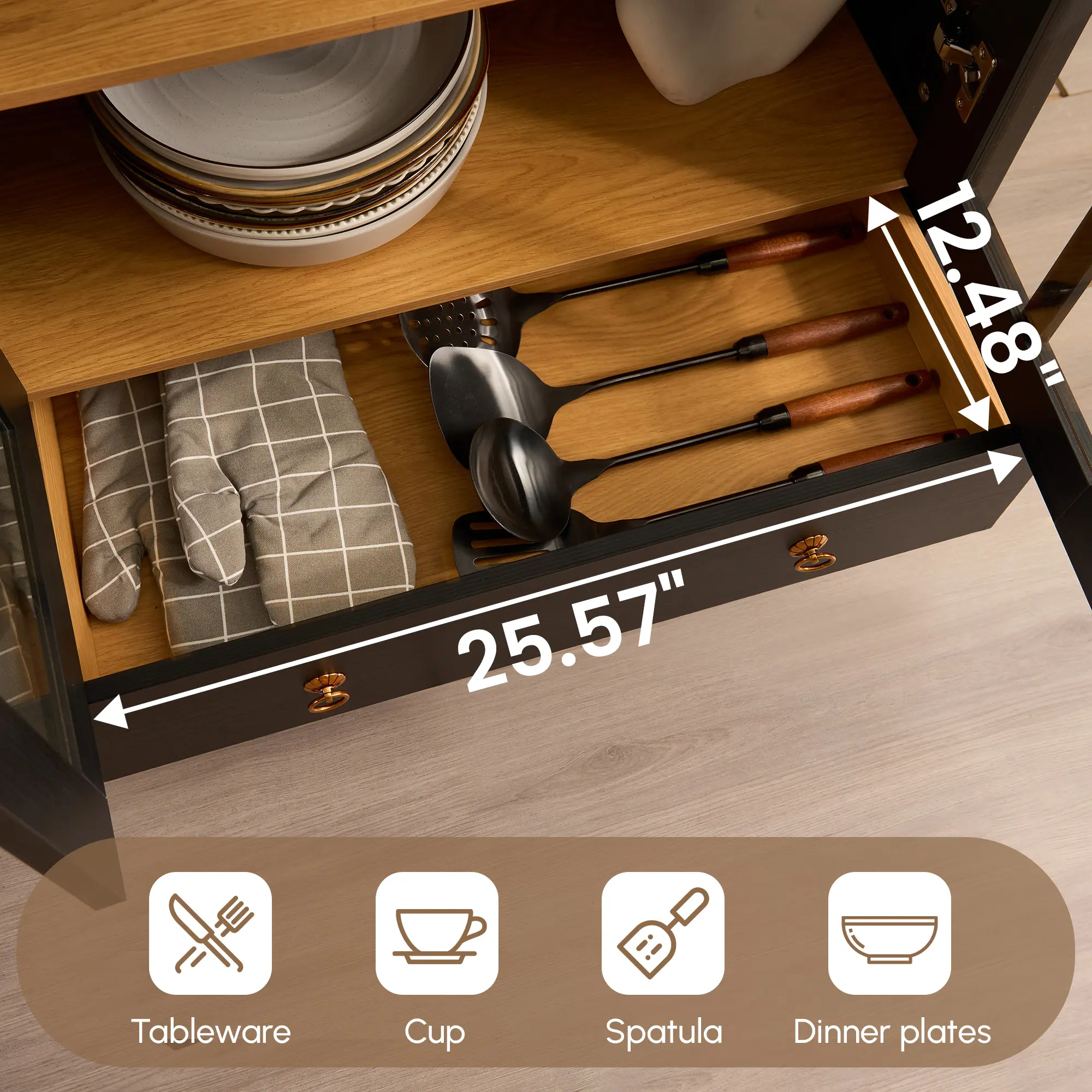 ·AMPLE STROAGE SPACE: Kithchen pantry stroage cabinet with spacious drawers. The drawers provide ample space for utensils, flavoring, and other essentials, fit larger items. This pantry's powerful storage capabilities ensure a clutter-free and organized kitchen, making it an indispensable addition to any home