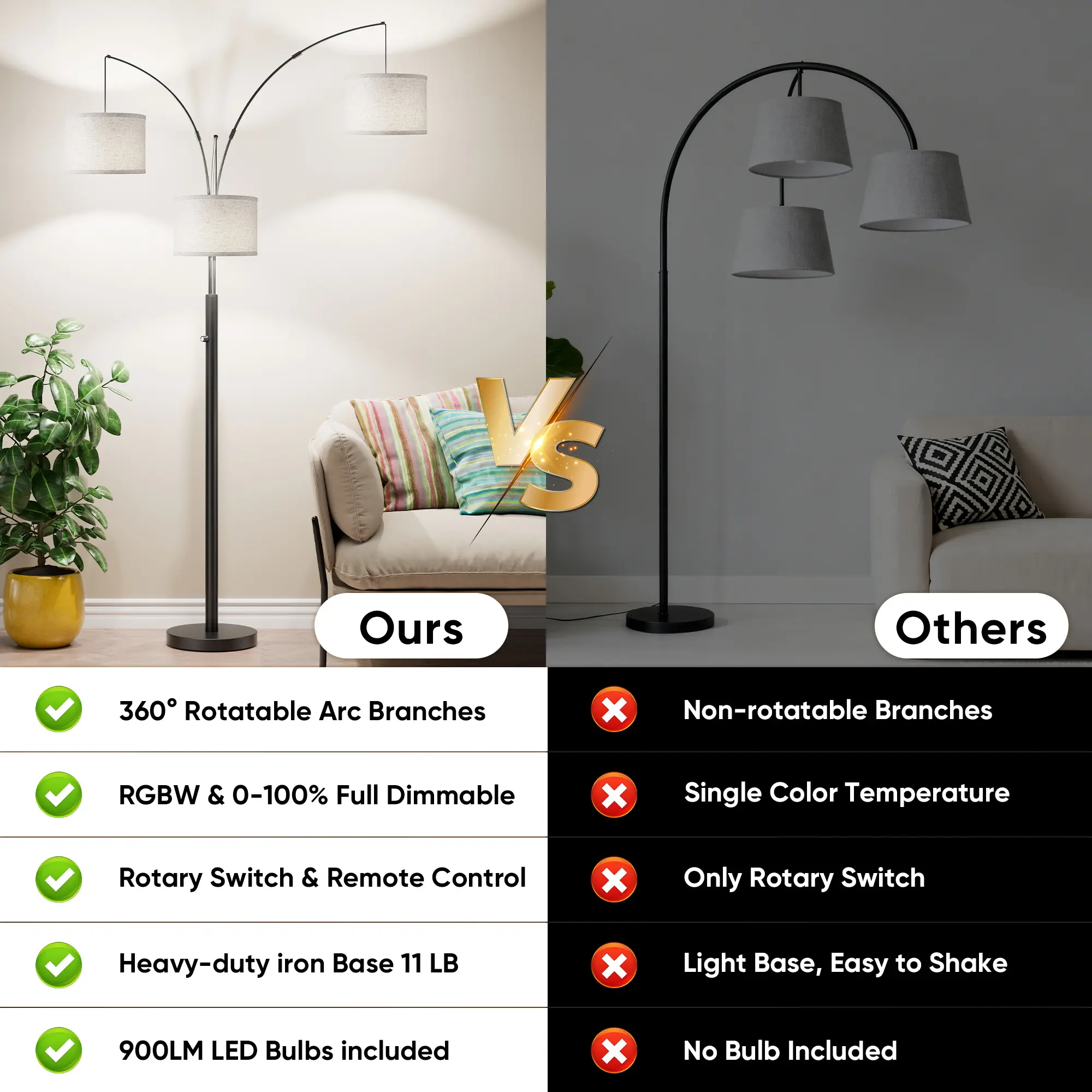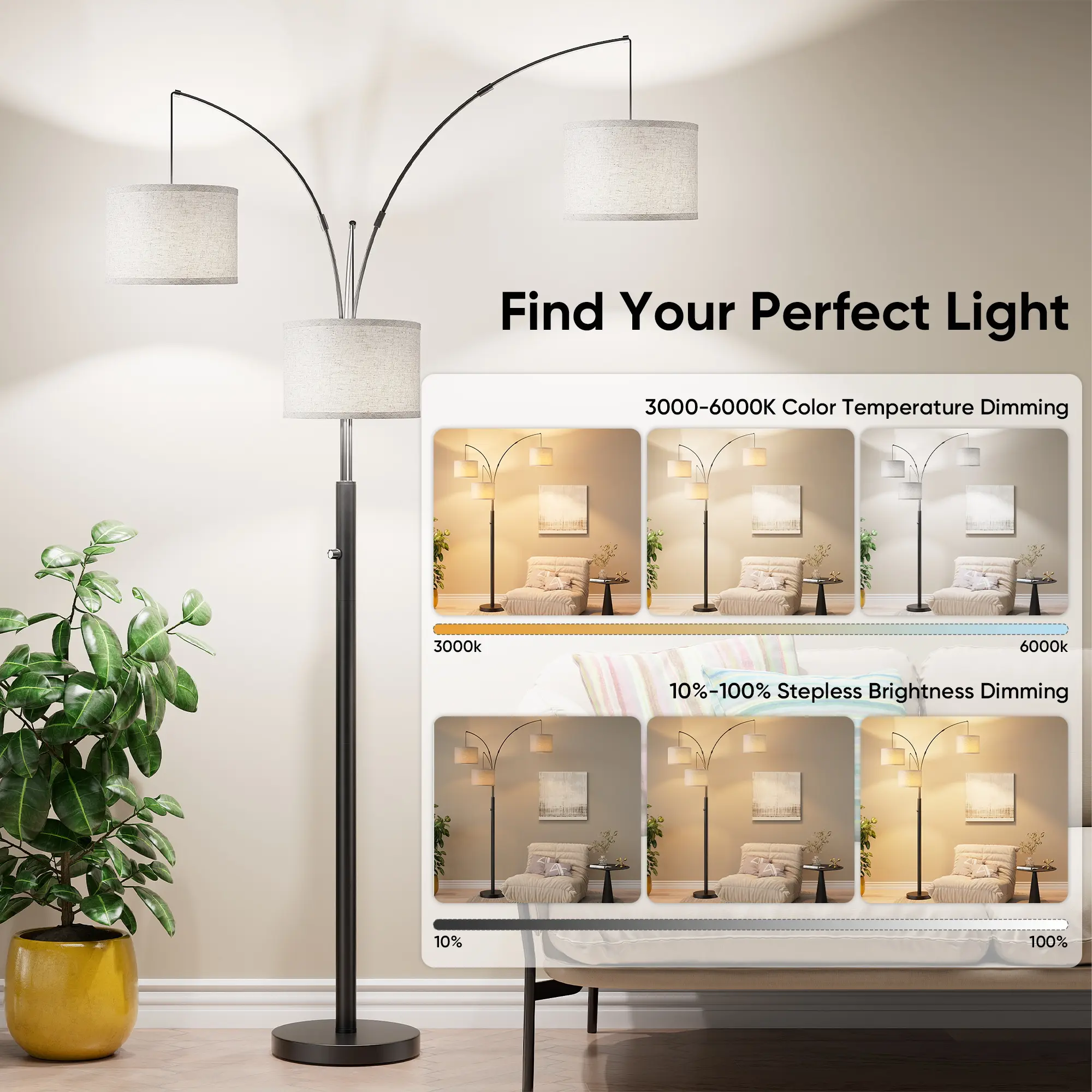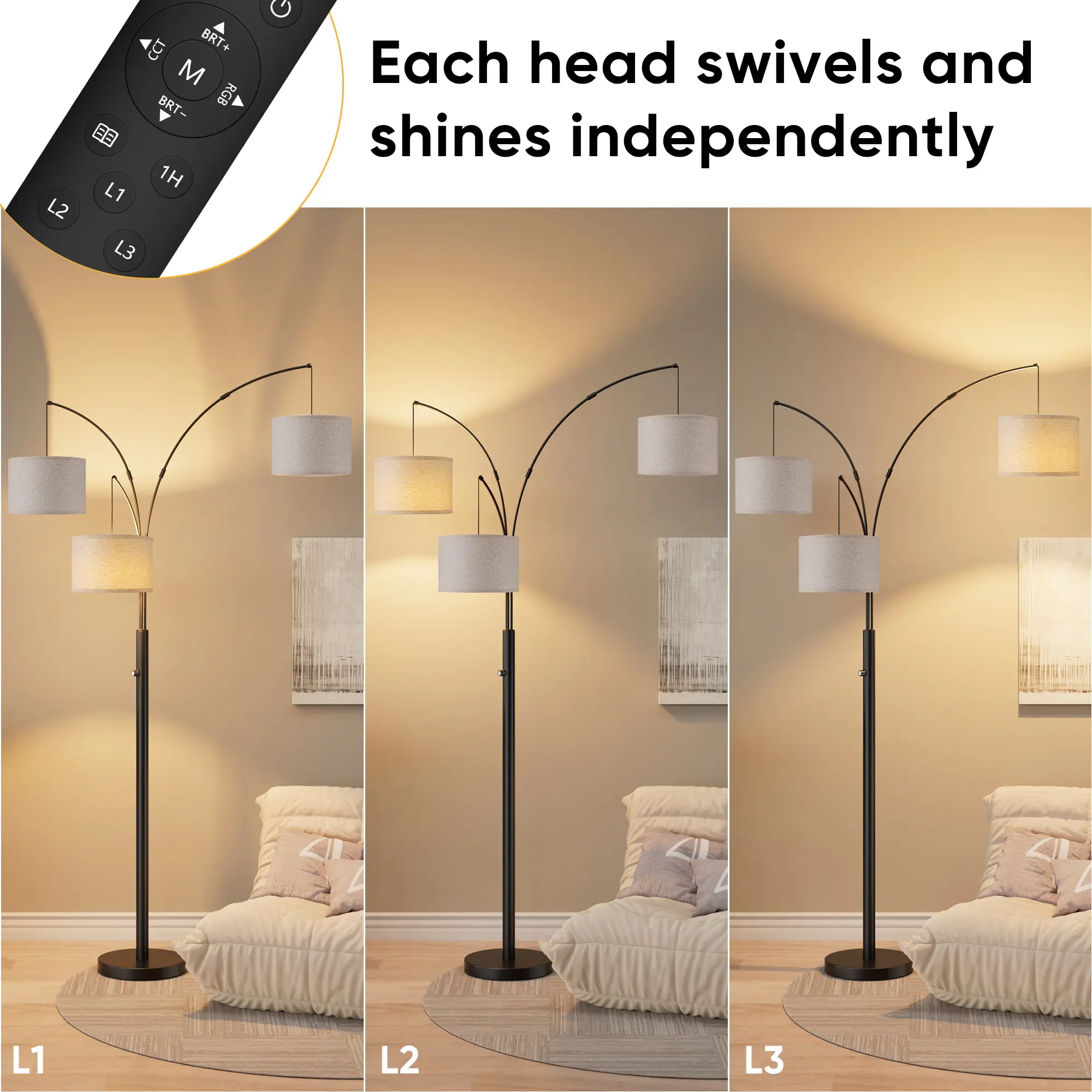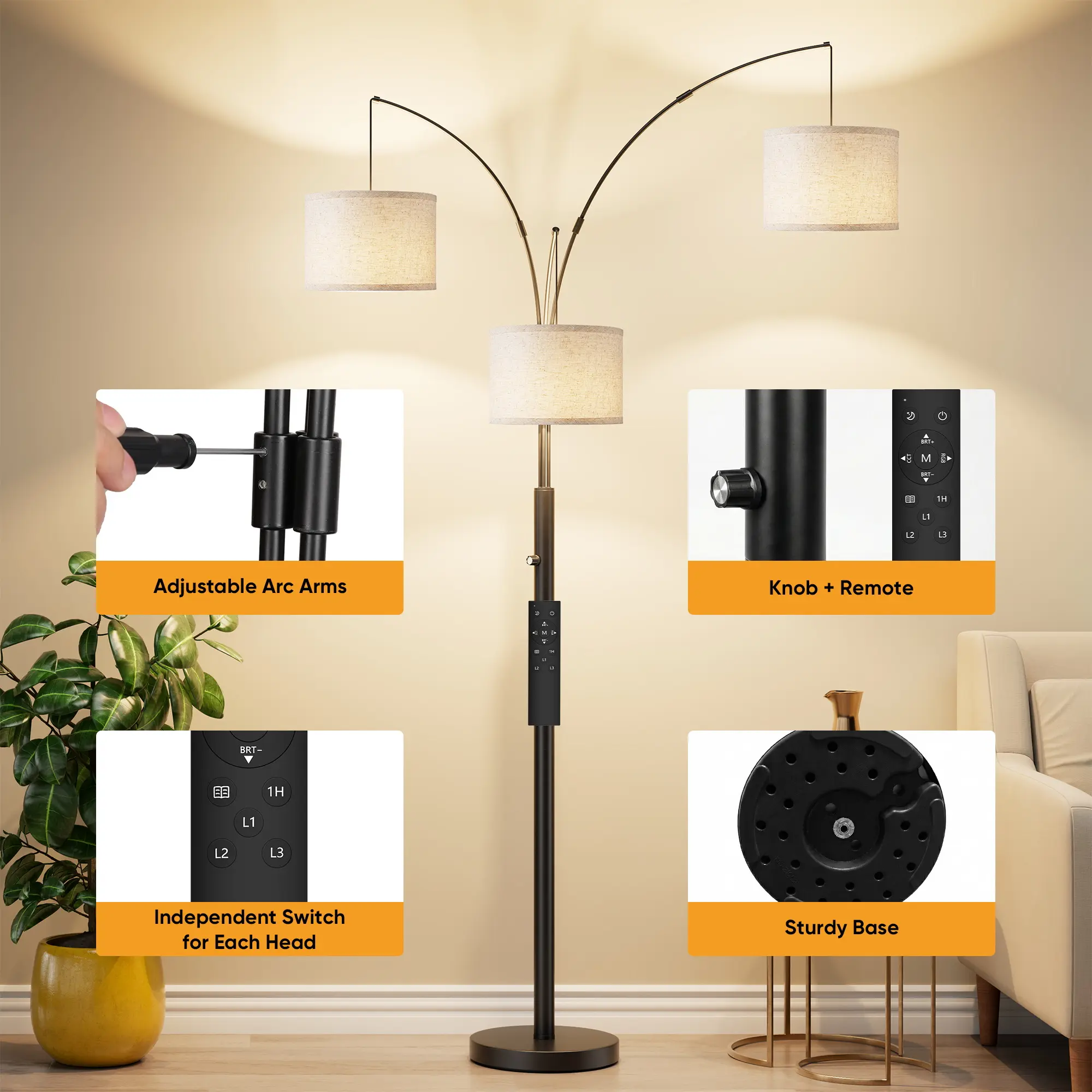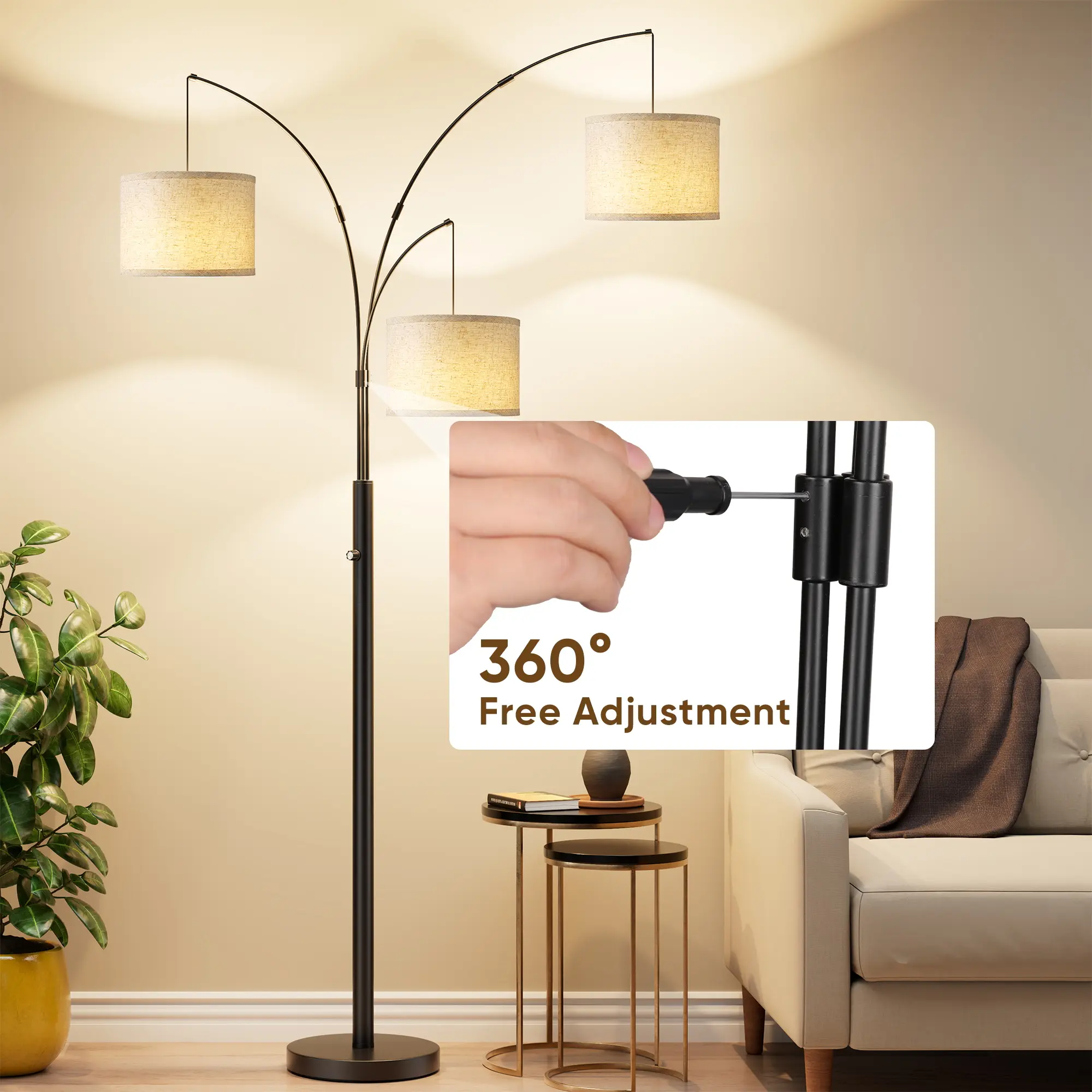 The multi-arm triangular arch design provides ample lighting. Suitable for bedrooms, lounges, and home offices, this lamp ensures adequate illumination for various spaces.
