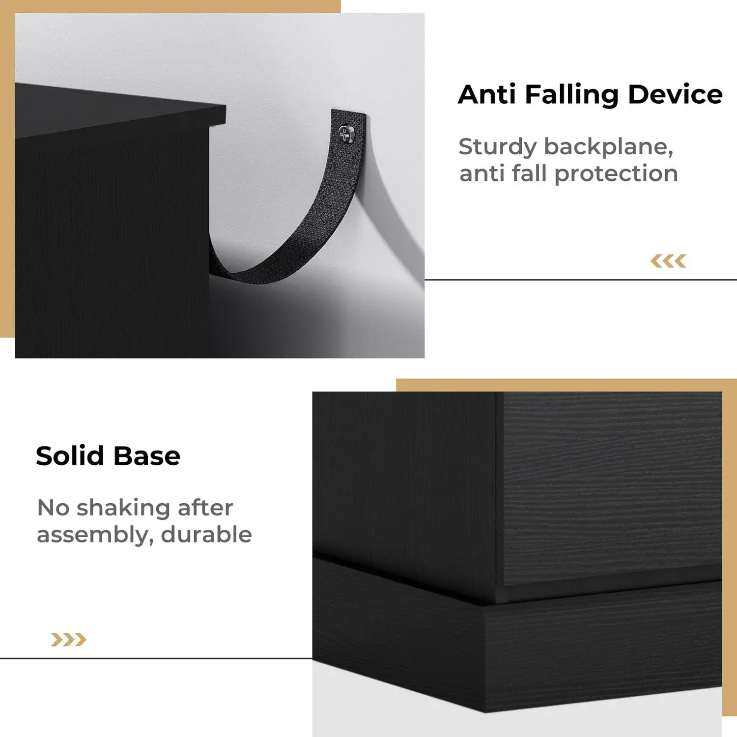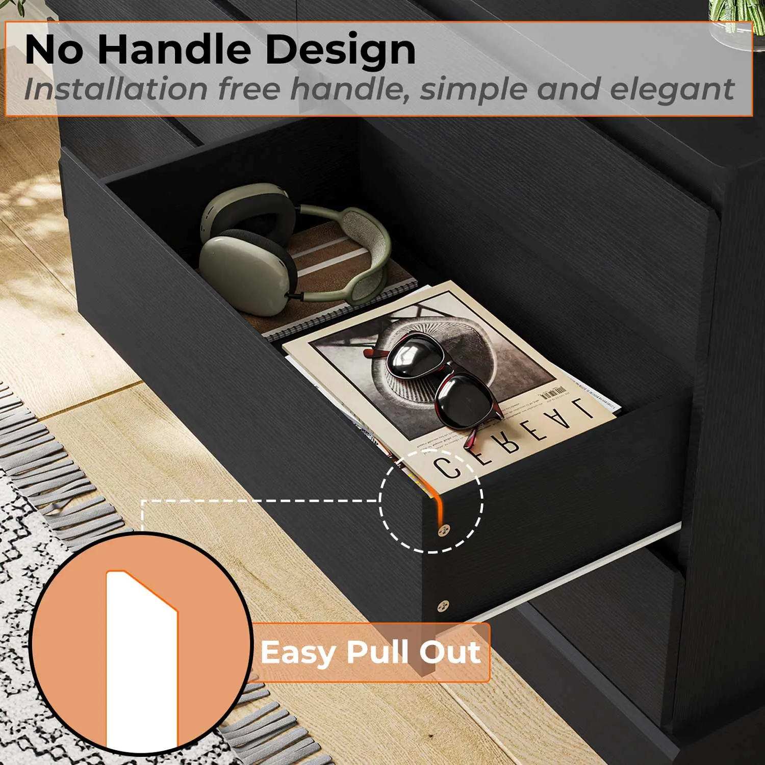 As a bedroom storage cabinet, living room dresser, and hallway porch cabinet. The black drawer dresser for the bedroom is made of solid engineering materials. The thick back plate ensures the stability of the drawer dresser and has a strong bearing capacity. It's a great gift for family or friends!