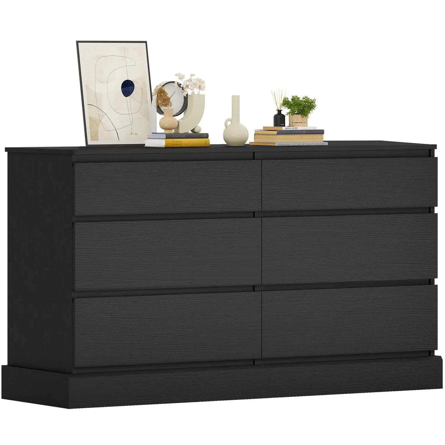 Modern Style Long Black 6 Drawers Dresser Match the Style of Your RoomDresser can be put in any corner of the home to play a roleWide Desktop and 6 Depth Drawers: 2 small and 4 large private storage drawers, the depth of each drawer is 14.6 inches.Advanced Metal Slide System