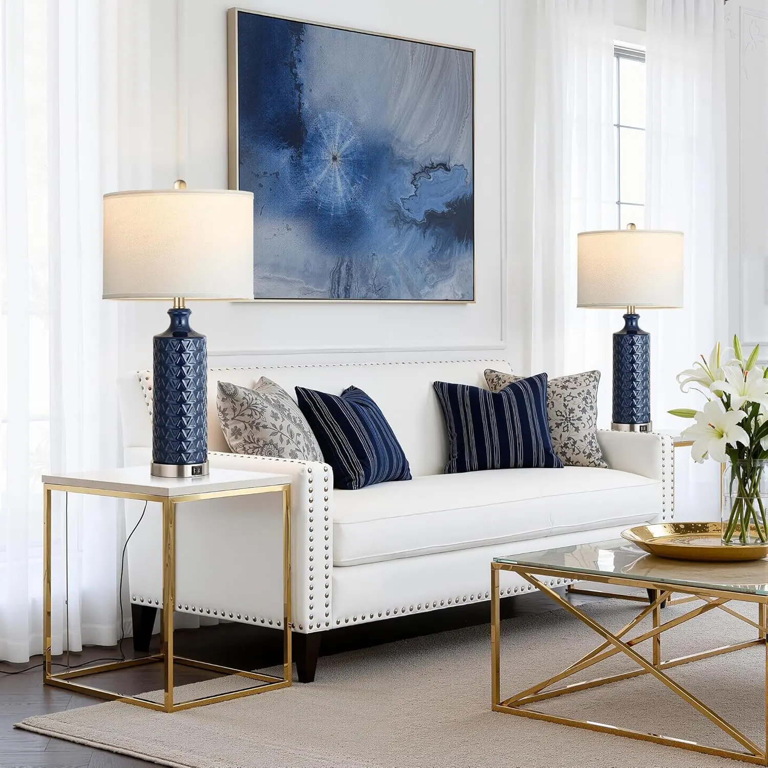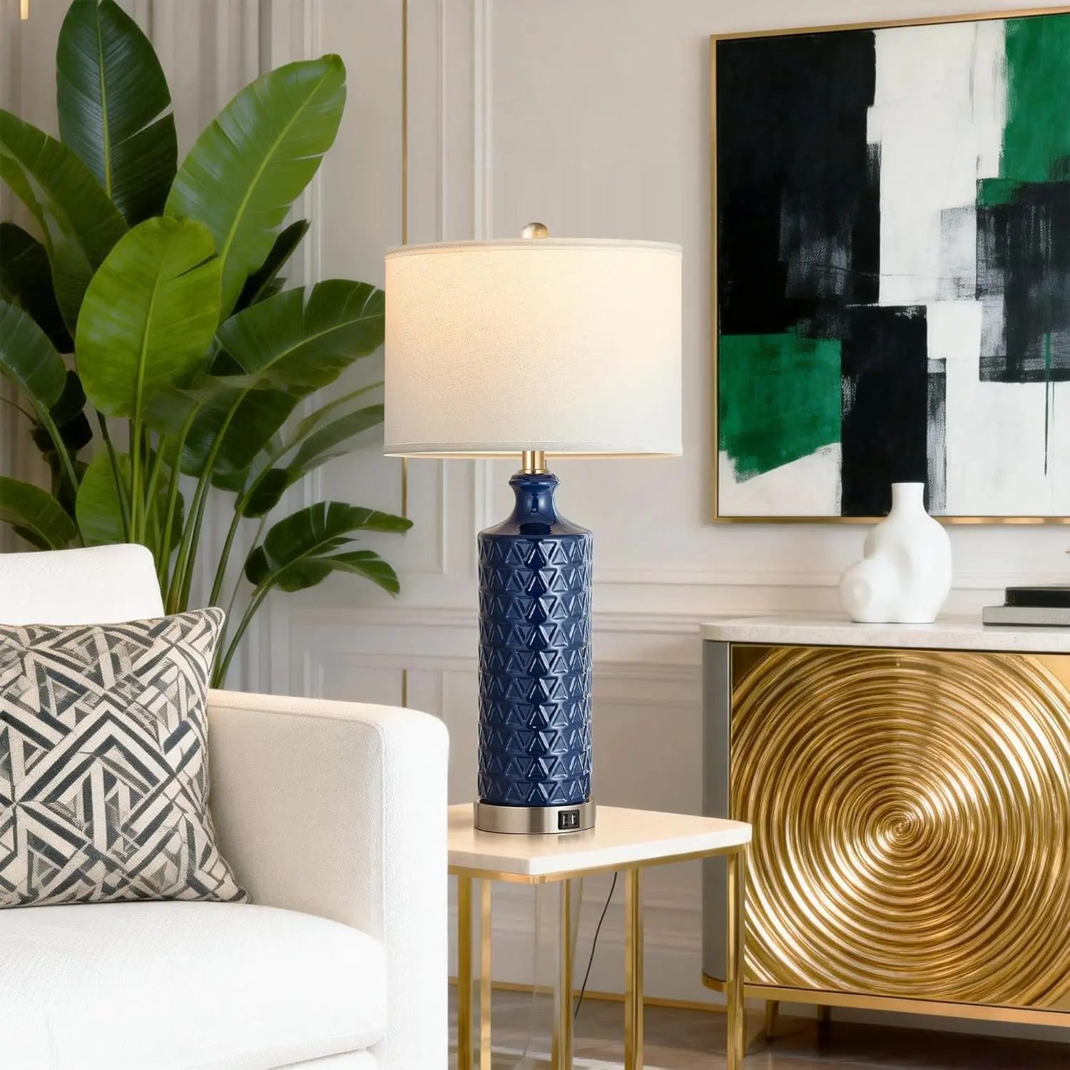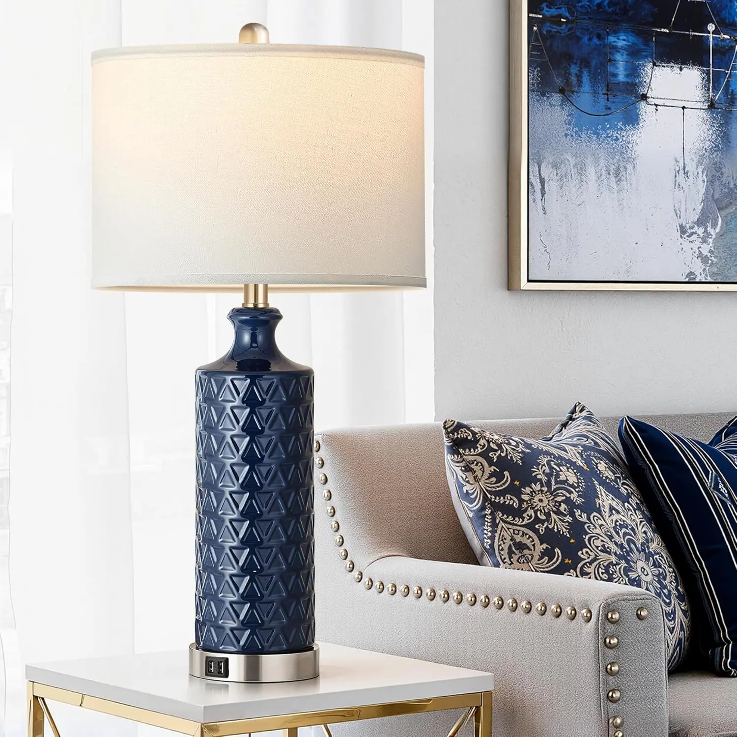 ·Modern Contemporary table lamp: designed with a textured ceramic lamp body and satin nickel base and topped with a white linen shade, this table lamp set of 2 adds a touch of modern style to your house decor and creates a warm, cozy atmosphere in your living place. Perfect for living room, bedroom, office, console table.